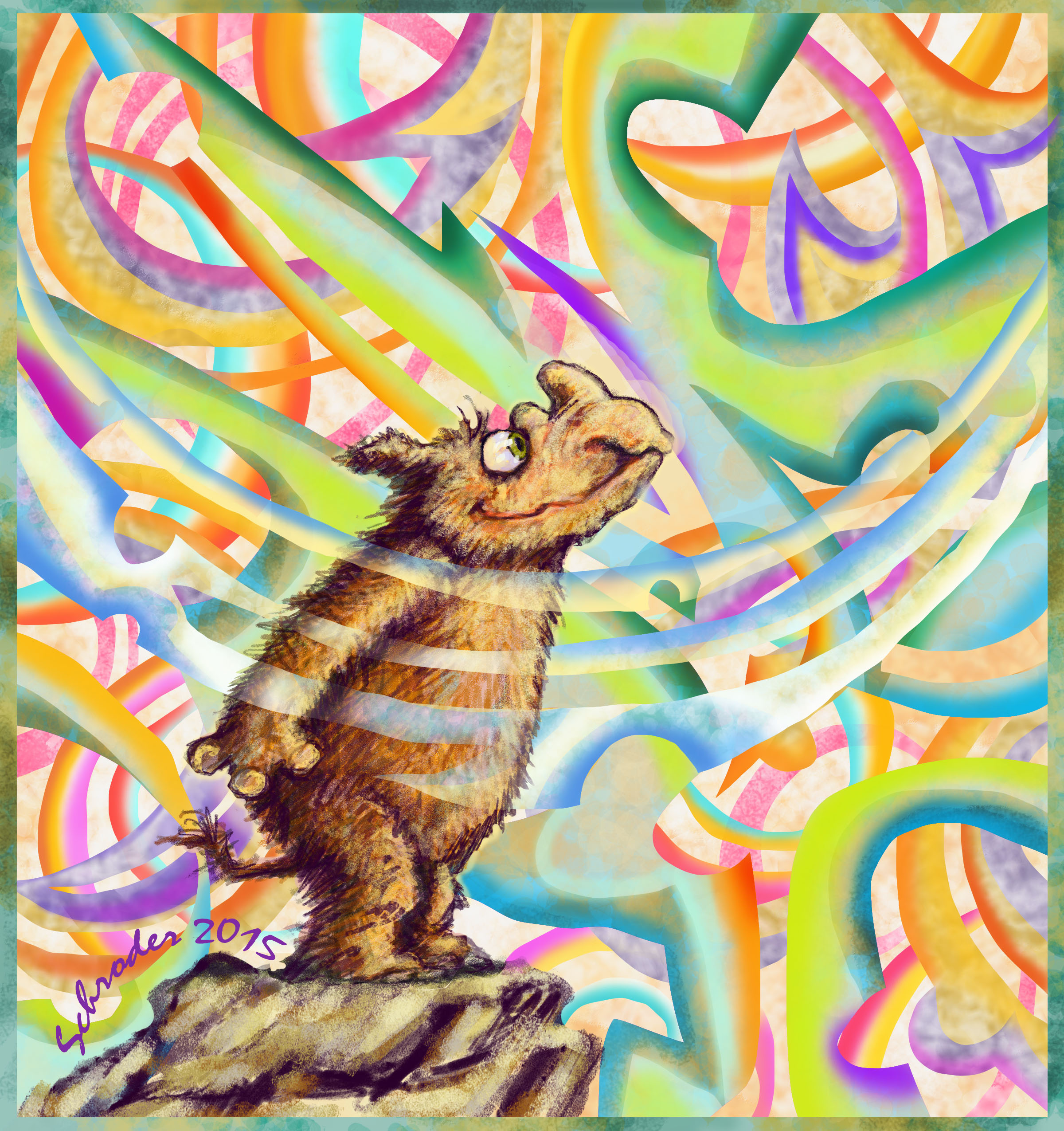 Look at that guy — quivering with the anticipation of who knows what, and filled with delight! I love him! I ought to wear this guy on my heart! Dad (very orderly himself) always said with an element of self-depreciation that creativity was cultivated by a willingness to tolerate chaos. But apparently, Rhinos know all this. At least, the ones that survived.