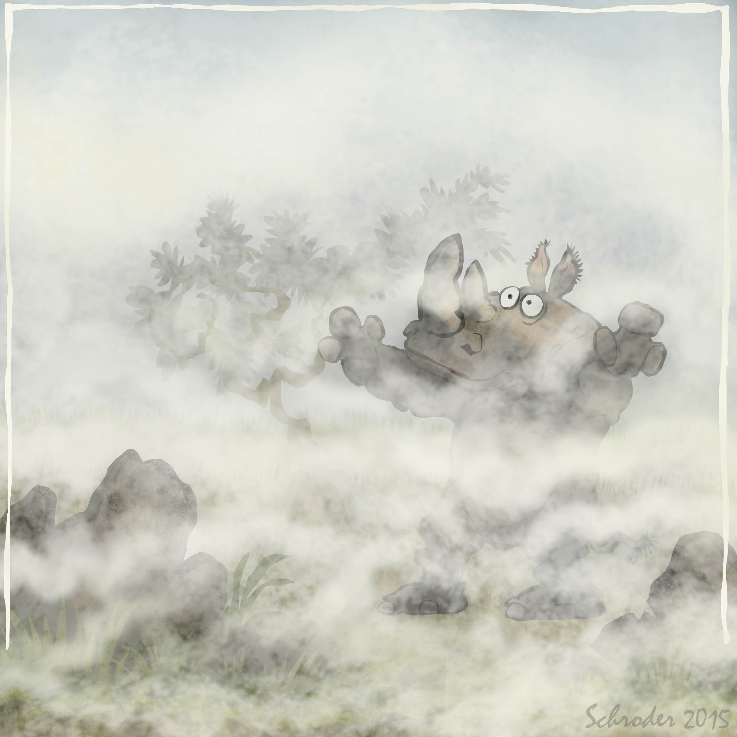 Weather comes in many flavors, Fog being one of the most exotic. Where Rhinos live, it only comes in certain seasons; it’s unpredictable. We look forward to it in a spine-tingly way. It’s fun to be able to see next to nothing, and inch along, judging each step and humming upbeat tunes to bolster our spirits.