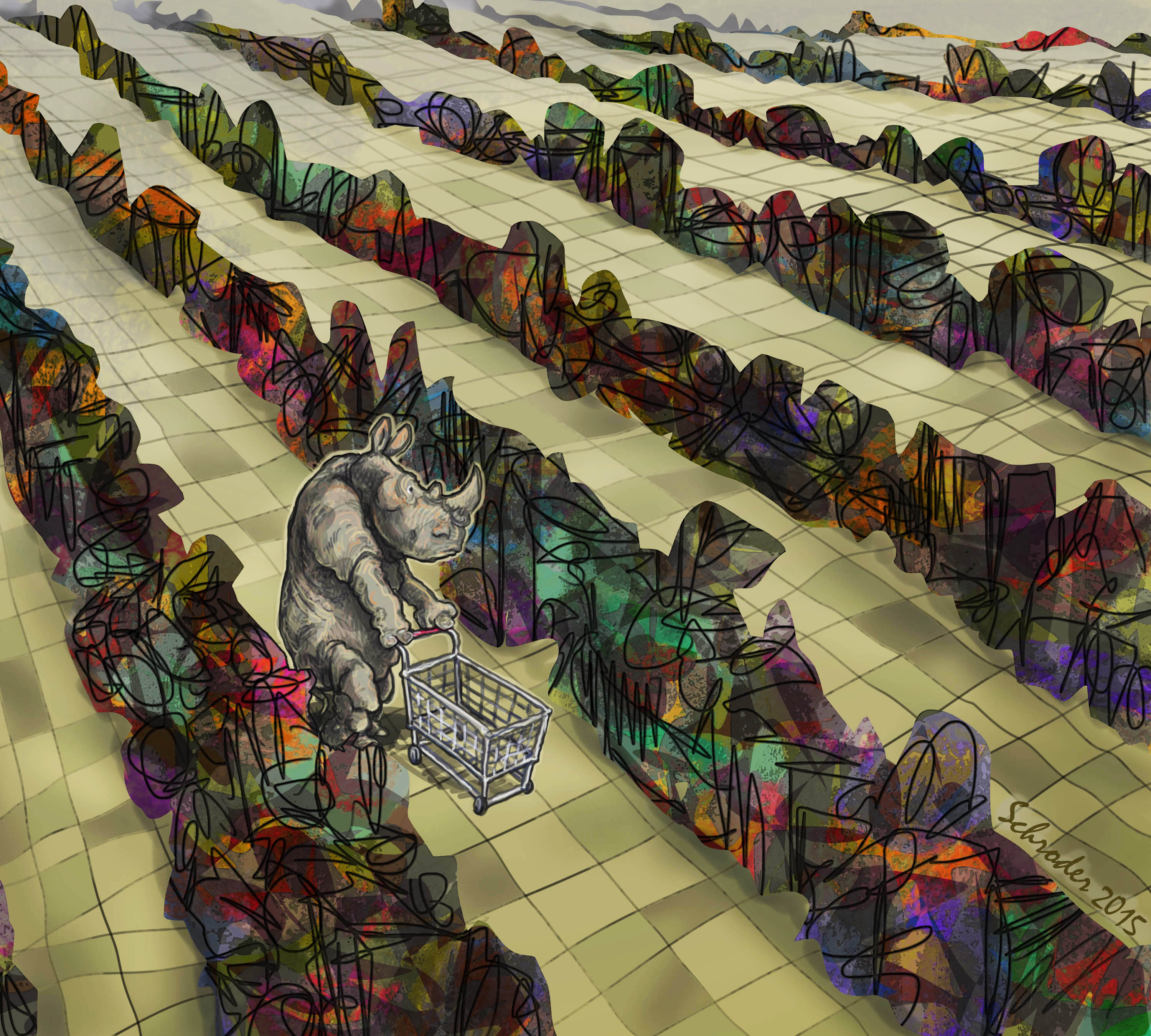 So much shopping, so little time January 5, 2016 by Bill Schroder in R Life Lessons, R Philosophy When it’s time to make a Mistake, We Rhinos are always astonished at the range of choices there is. And We don’t have to settle on just one at a time. The selection seems infinite, but perhaps it isn’t. We’ll probably never know. Share this: Click to share on X (Opens in new window) X Click to share on Facebook (Opens in new window) Facebook Like Loading... Related