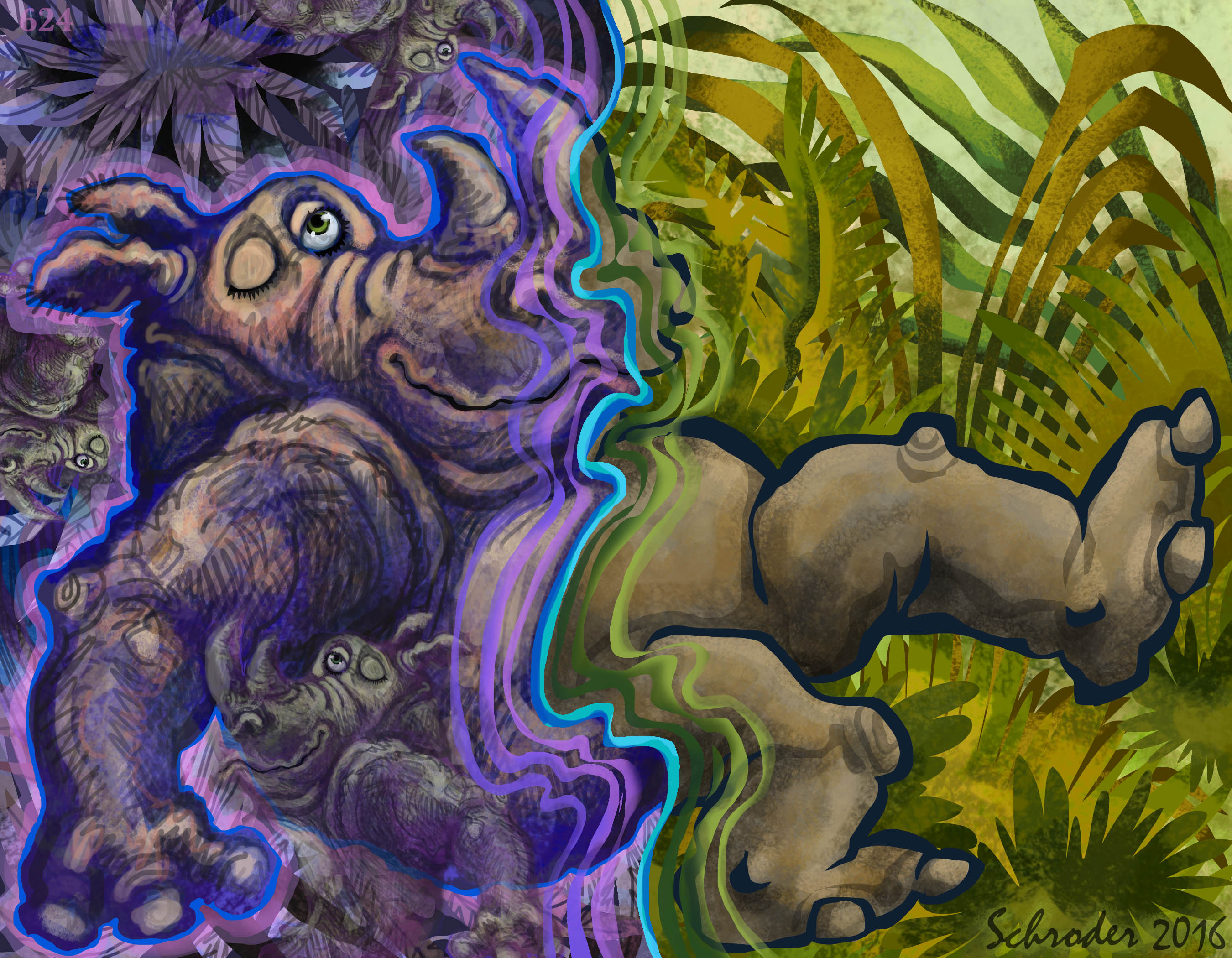 Rhinos mostly agree that when it’s time to wake up, the knees lead the parade. Most of Us is still dozing happily (wherever that happens) and then We are suddenly aware that the knees are on the move.