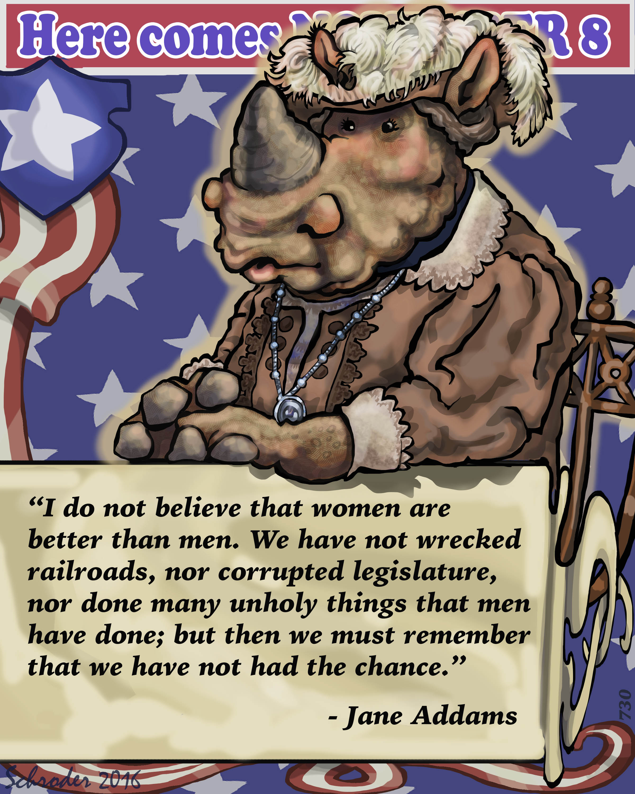 It’s hard to know where to start praising Jane Addams, the co-founder (with Ellen Gates Starr) of Hull House. Together they established social work in the United States, providing for their community. She was a reformer, speaker, philosopher, and activist. Ms. Addams was a staunch Pacifist.