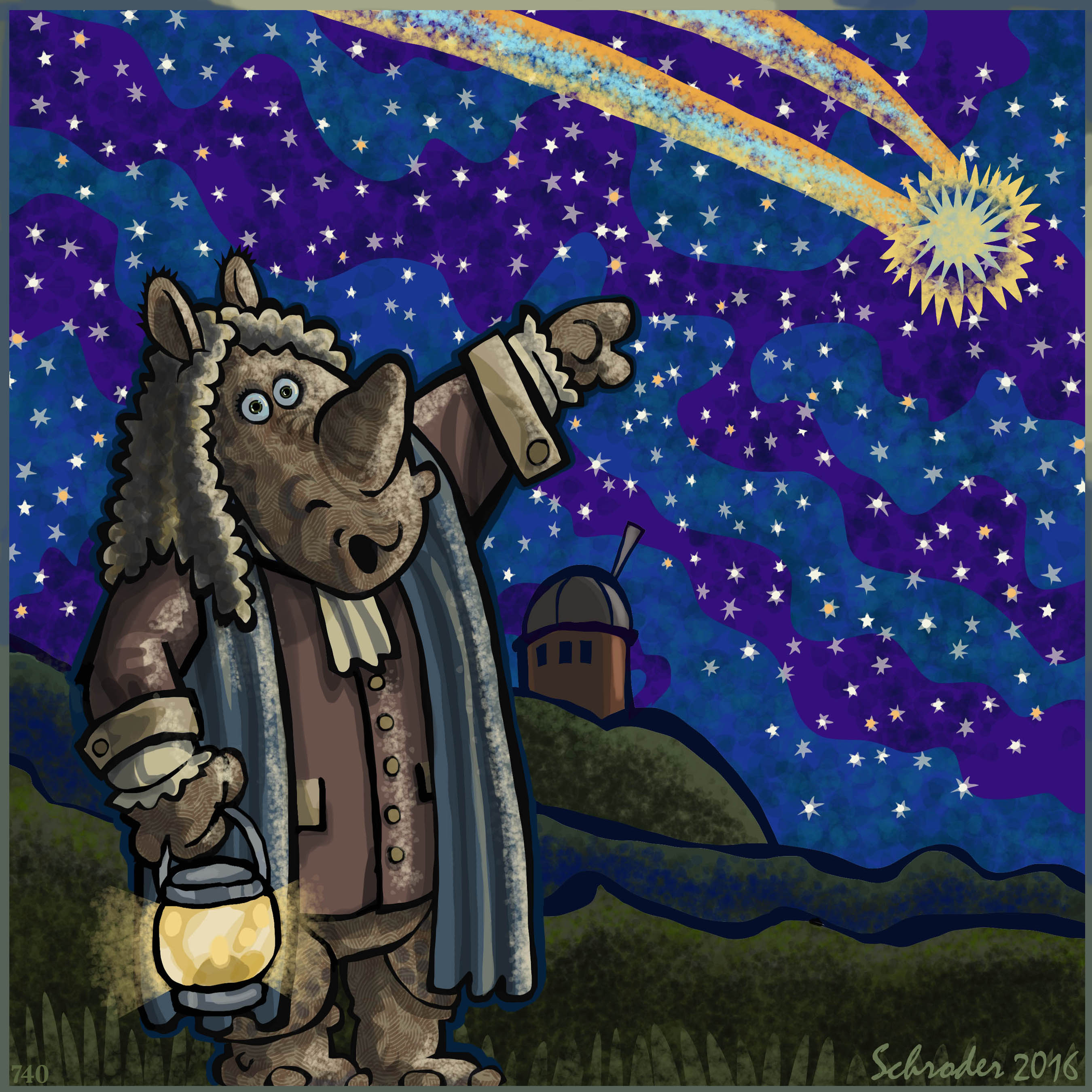 Mr. Edmond Halley was Astronomer Royal in England, born today in 1656. There is a comet named after him, because he figured out that it would show up every 75 (or maybe 76) years. Mr. Halley was 27 when the comet flew by, its solo appearance in his lifetime.