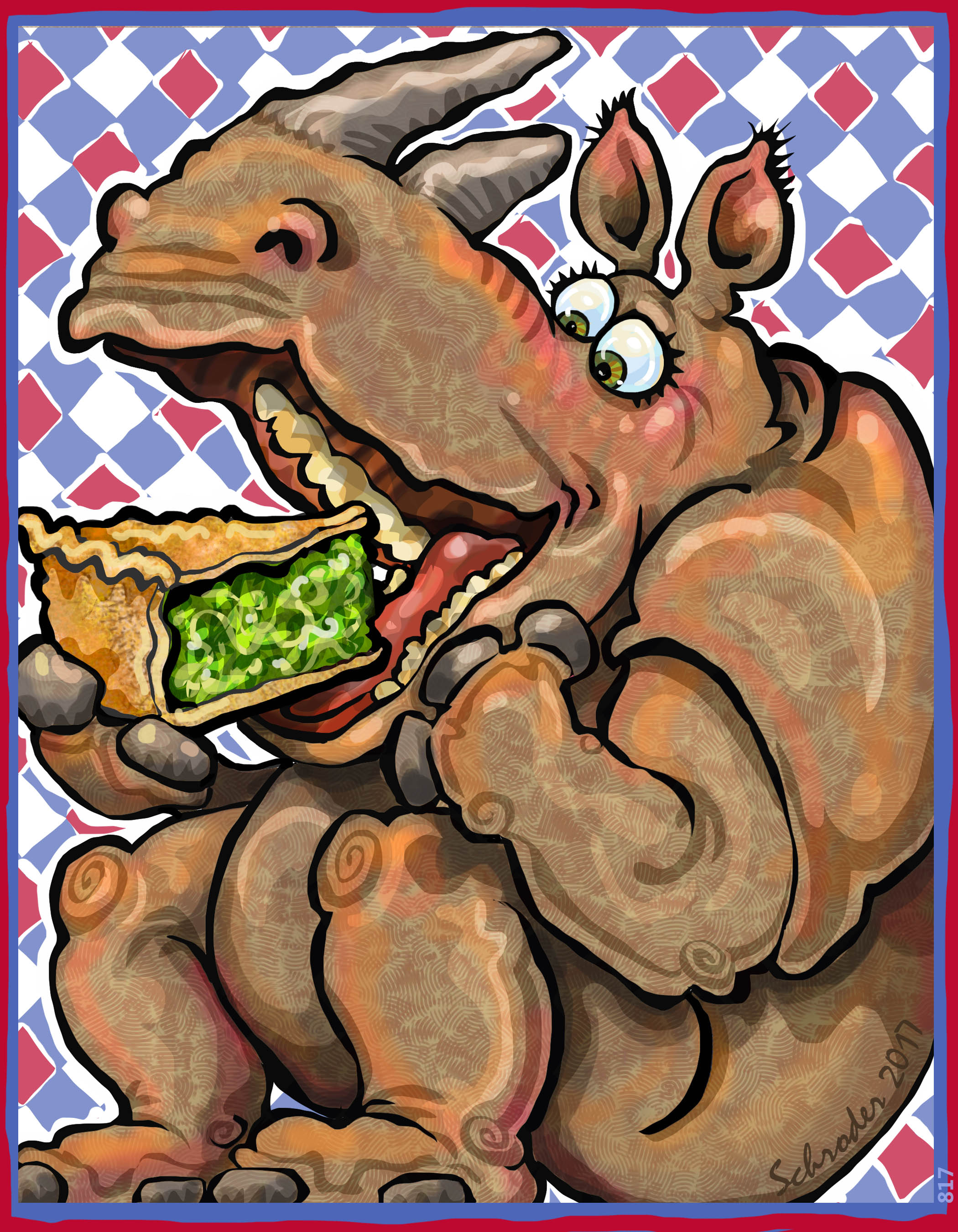 Rhinos are oh-so-much into the spirit of Pie Day, snarfing up foods that make Us merry. We need a lot of food to keep ourselves in trim, and pie is always an attractive idea.