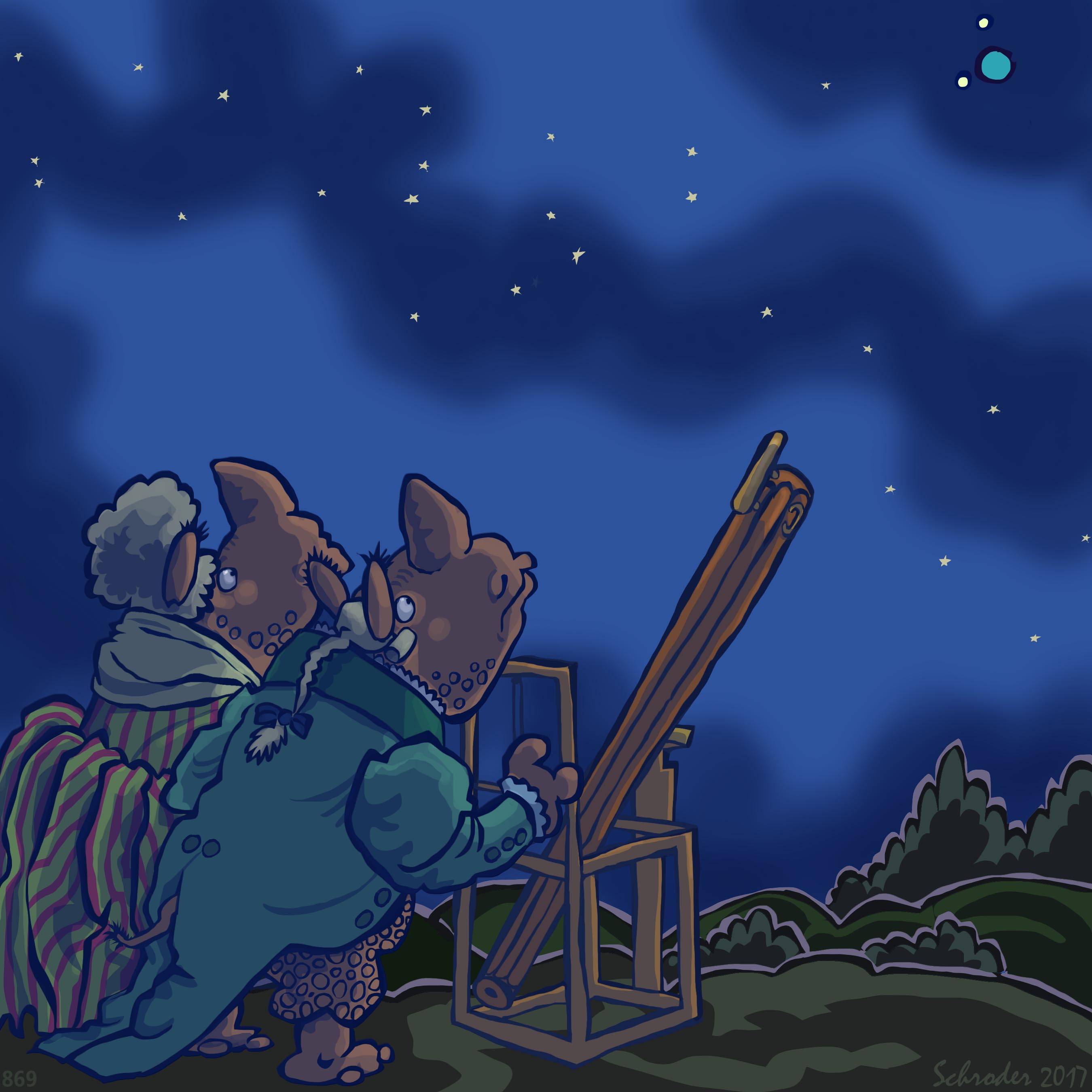 Today in 1781 William Herschel and his sister Caroline discovered the planet Uranus, using his telescope. This revelation was astonishing, since it had been a long time since anybody had found a planet. They also saw two of Uranus’ moons (of twenty-seven).