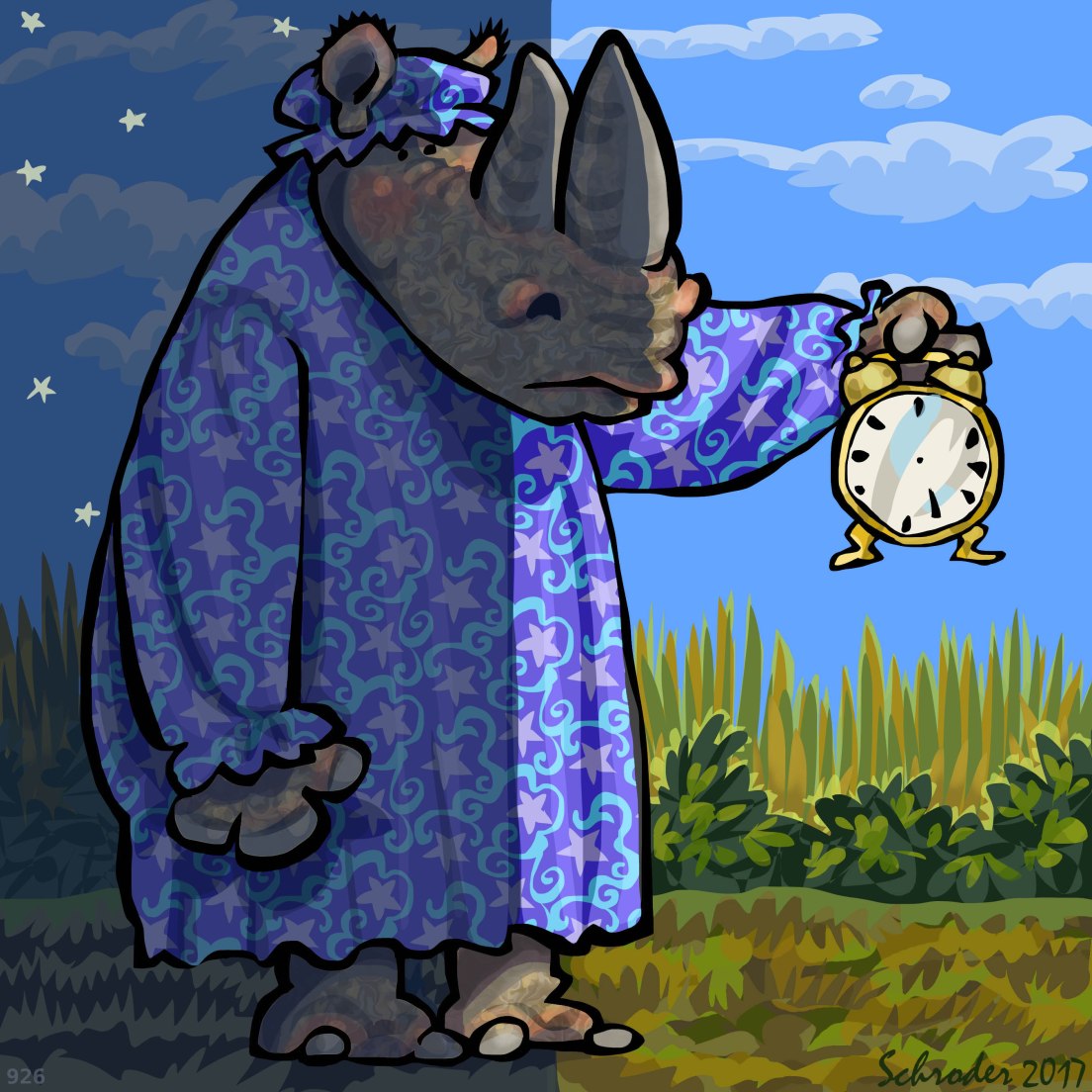 We Rhinos are not particular about Bedtime really. We sleep when it suits Us, and get going when it doesn’t.