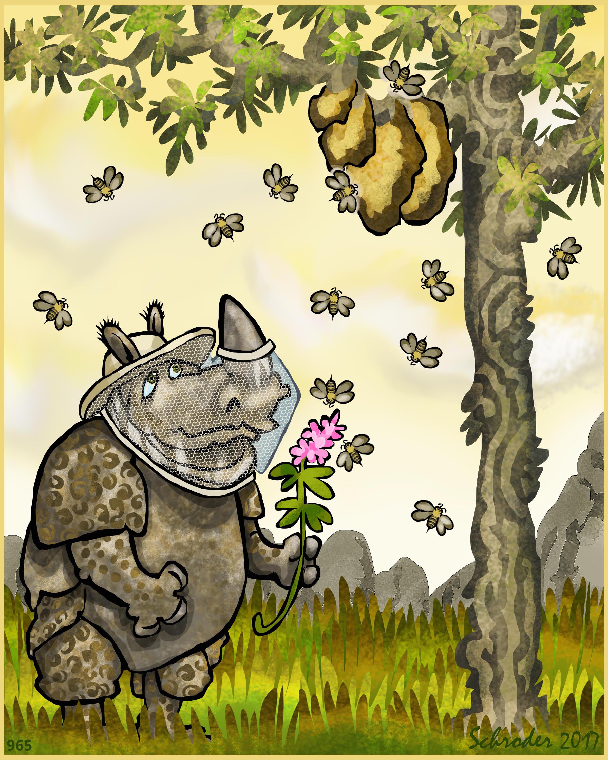 Cheery news, bees have no interest in Rhinos; our skin is thick and We pose no threat. They build hanging combs, way up. Live and let live, y’know?