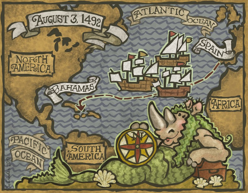 Today, in 1492, Mr. Christopher Columbus and 87 sailors set off to find China in three ships . Two months later they arrived in San Salvador, delighted to get to dry land. Needless to say, it was not China.