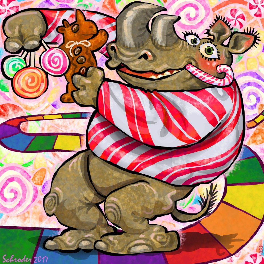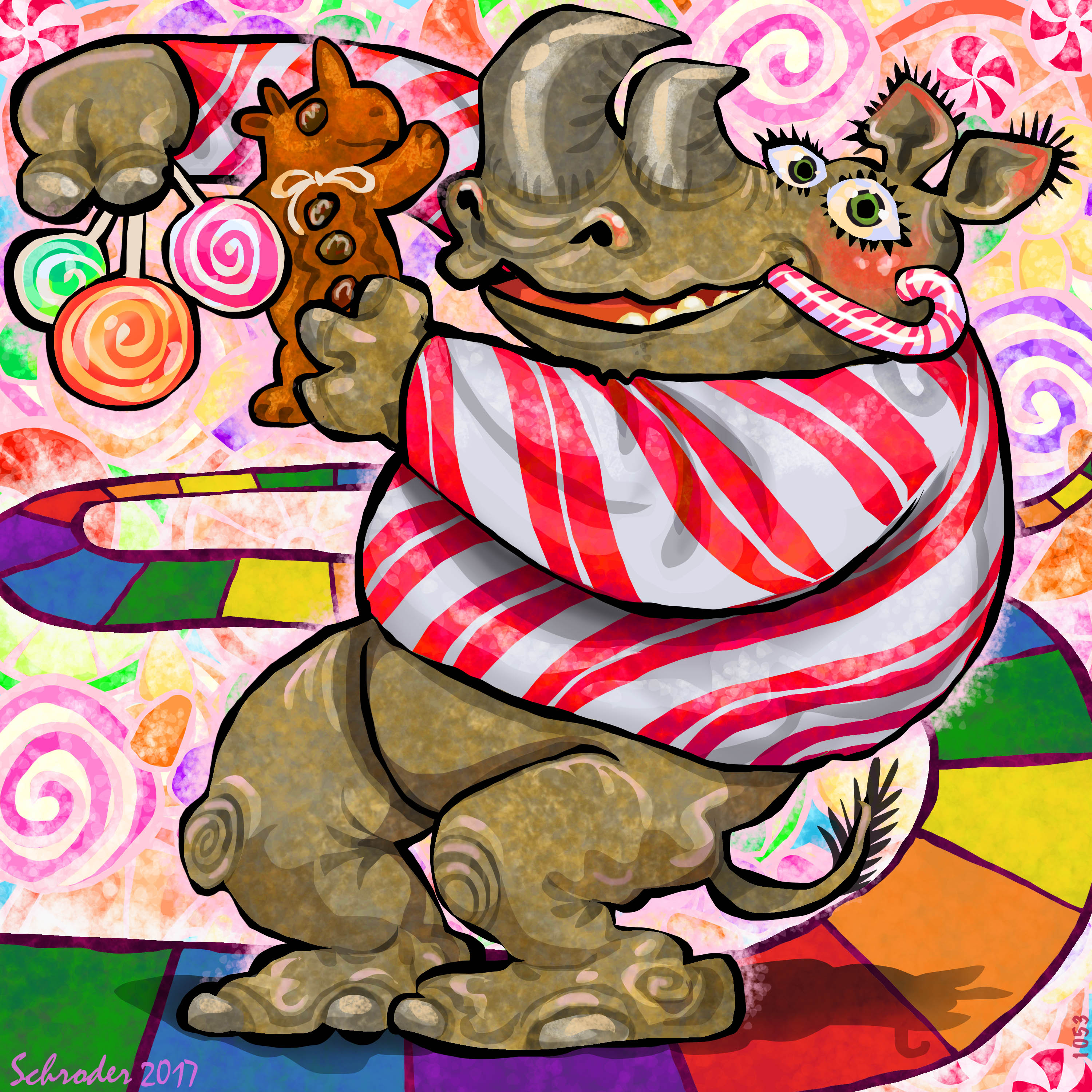 In 1948, Ms. Eleanor Abbott was recovering from polio in the hospital. There she created a board game for small children called CANDYLAND. It is a simple race-to-the-finish game for those who cannot read or count. A very Rhino sort of game.