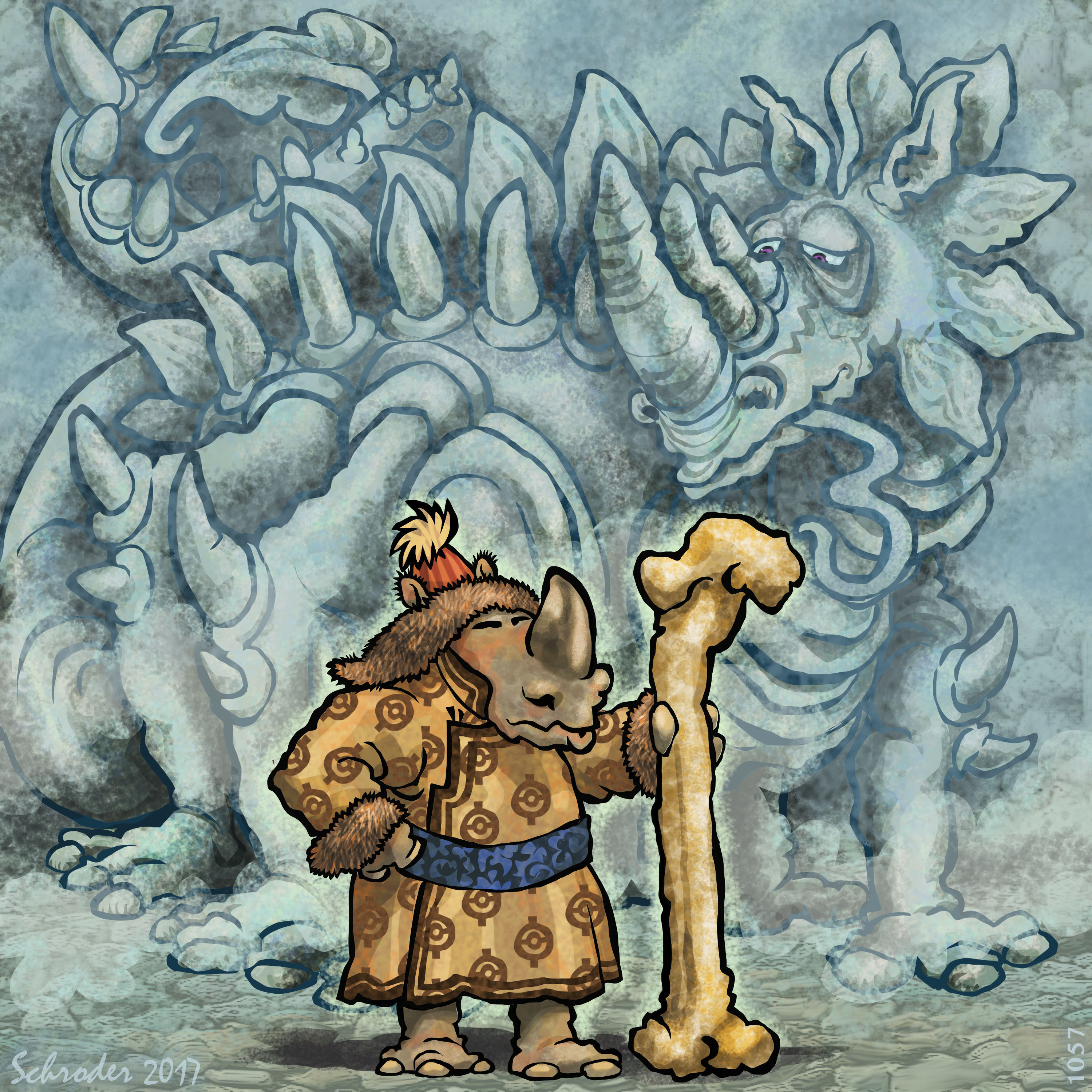 What captures the Rhino Imagination is what anyone would make of a wandering bone, before all the 19th century Science and the related explanations of prehistoric events.