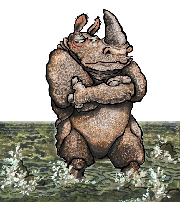 Rhinos spend almost no time ever in the open water. Still, We know it’s there, sloshing around. We are observant.