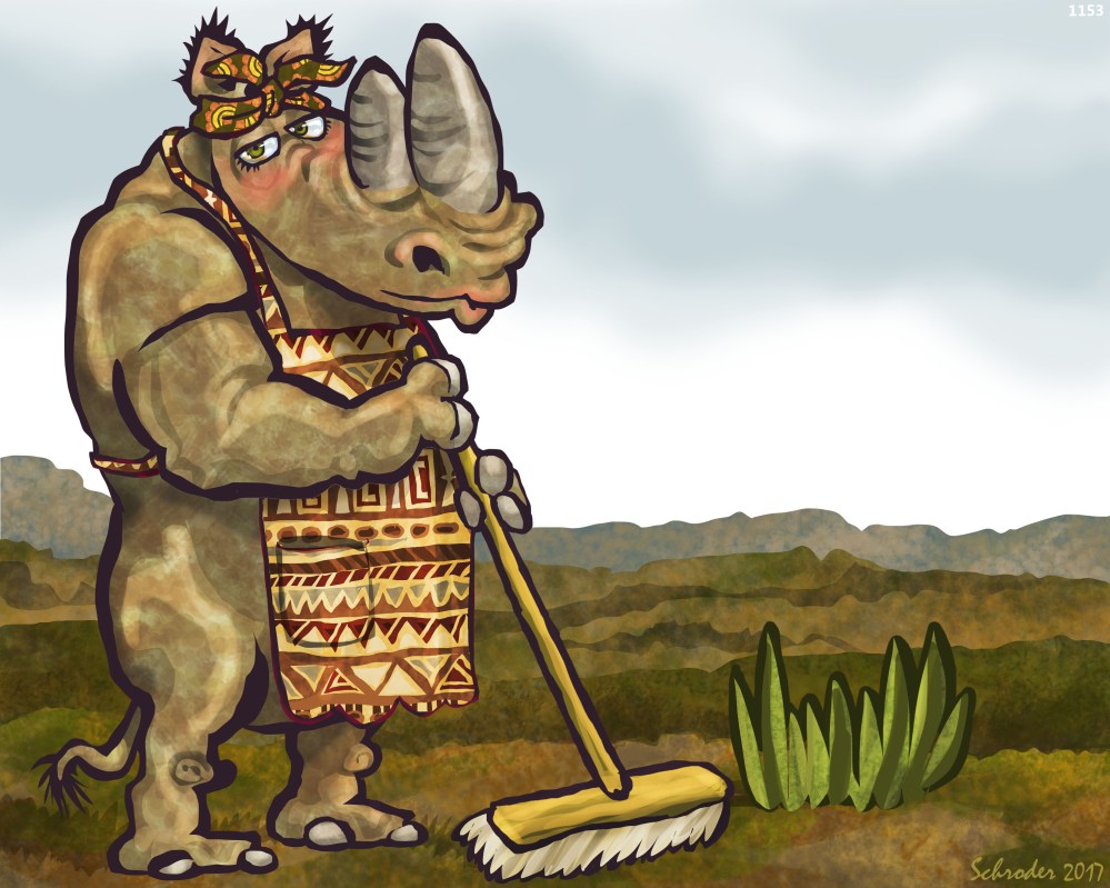 Because We live in the Wild, there is almost no point in housekeeping. Most of housekeepery depends on dust and grime, which Rhinos celebrate daily.