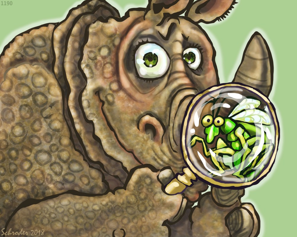 Rhinos know stuff about bugs. They buzz around, eat something or other, make baby bugs, and then die. Their lives are short. We know what they do. What We don’t know much about is how they feel about it, what they think about as they tend to their business.