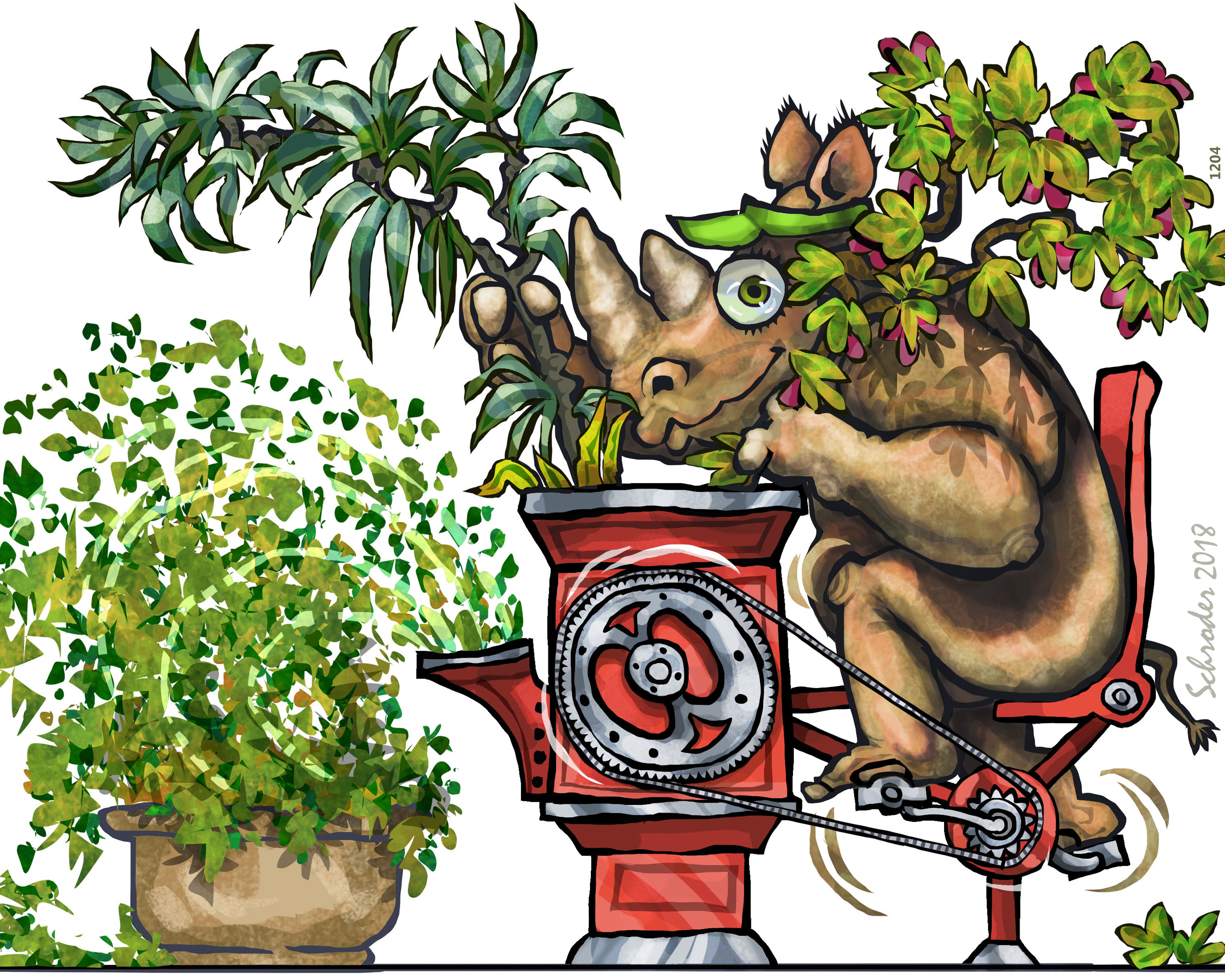 Rhinos are blessed with a wonderful set of teeth, big and ready for action. We just pop some greens into our mouths, work our jaws a bit, and Hey Presto!: coleslaw!