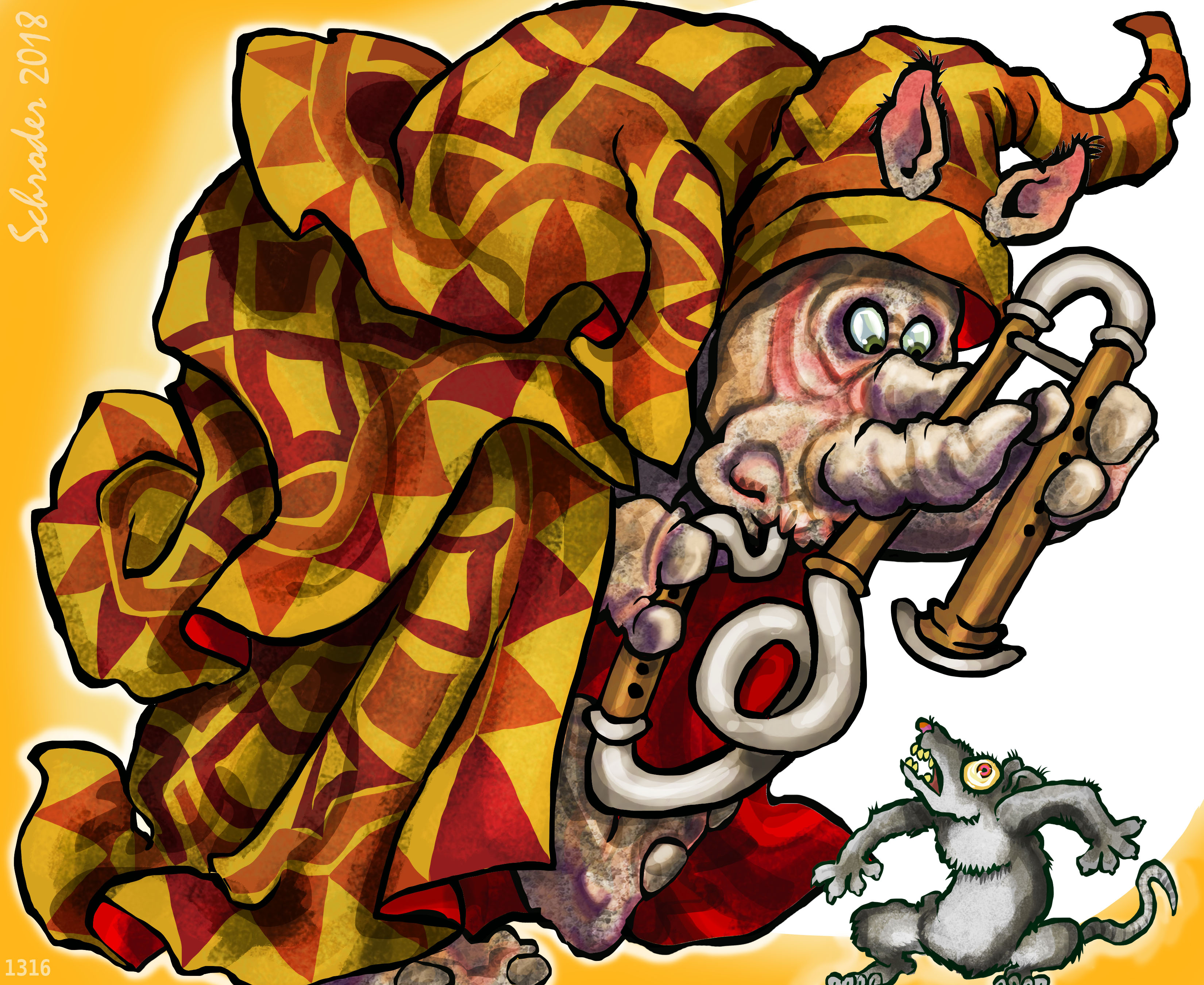 ‘The Pied Piper’ is a poem by Robert Browning, first published in 1842. It deals with a rat infestation. The Piper rids the town of rats, but can’t collect his fee. Eventually he also has to get severe with the rats who run the town.