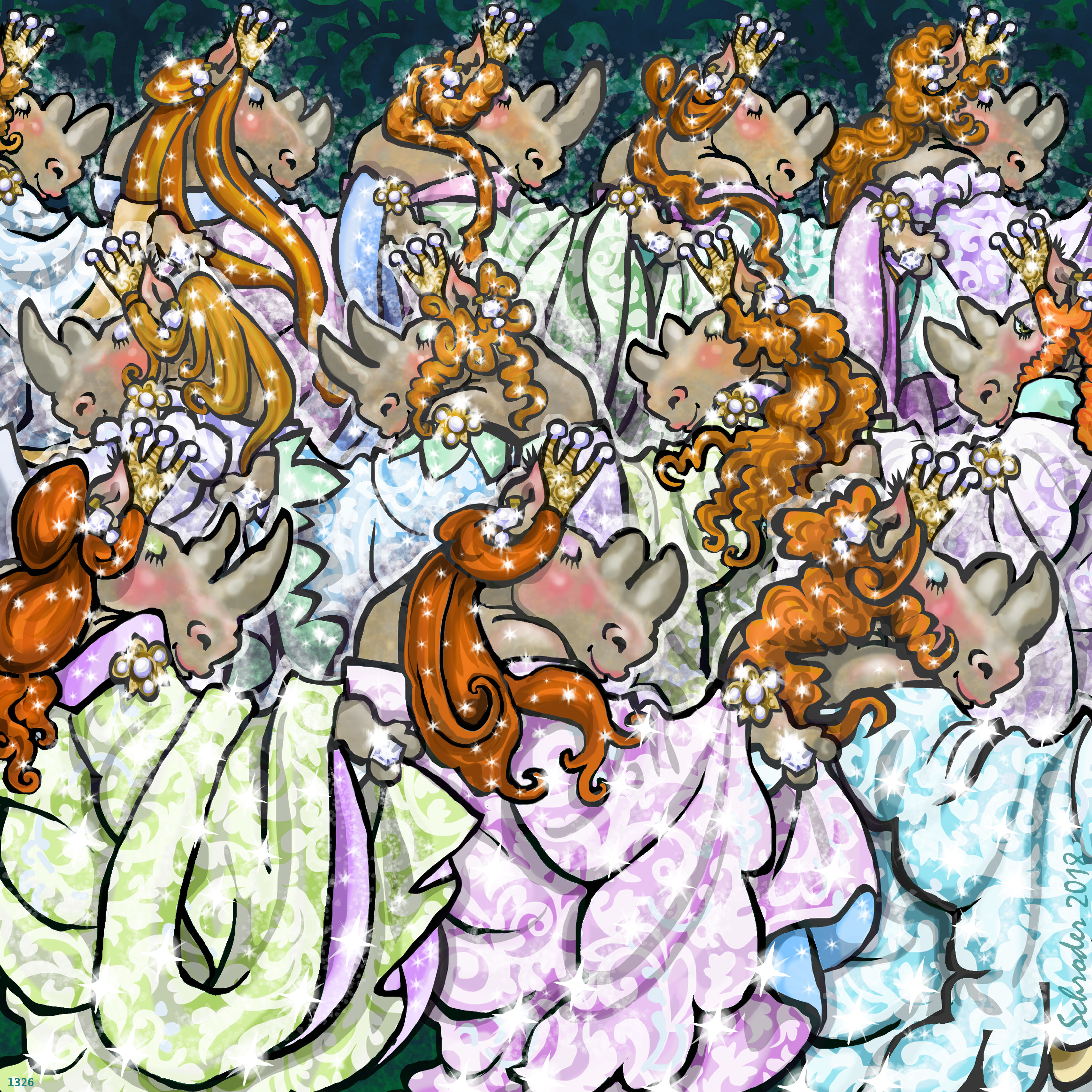 This story deals with a bunch of sisters slipping away for a good time in the middle of the night while everybody else is asleep. For Us, it is puzzling, since in the Wild, you can’t slip away anywhere; Privacy doesn’t exist. Still, it is perfectly possible for Us to imagine twinkly frocks and illicit frolics. Oh yes, indeed.