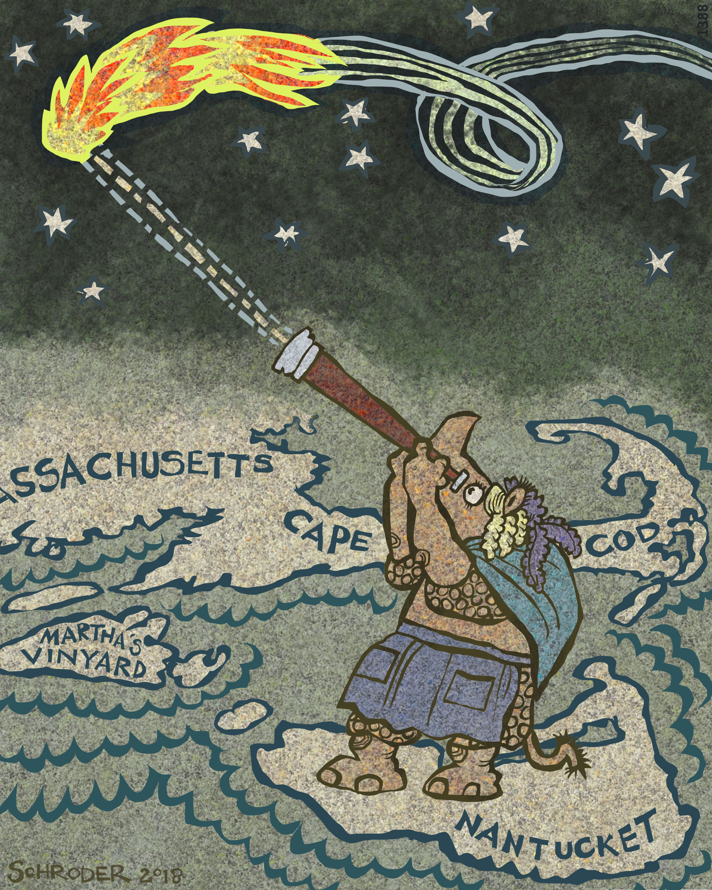 Ms. Maria Mitchell was born August 1, 1818 in Nantucket. In 1847 she discovered a comet with her telescope, and registered it officially. The King of Denmark awarded her a medal and the credit for her achievement. It is called “Miss Mitchell’s Comet”.