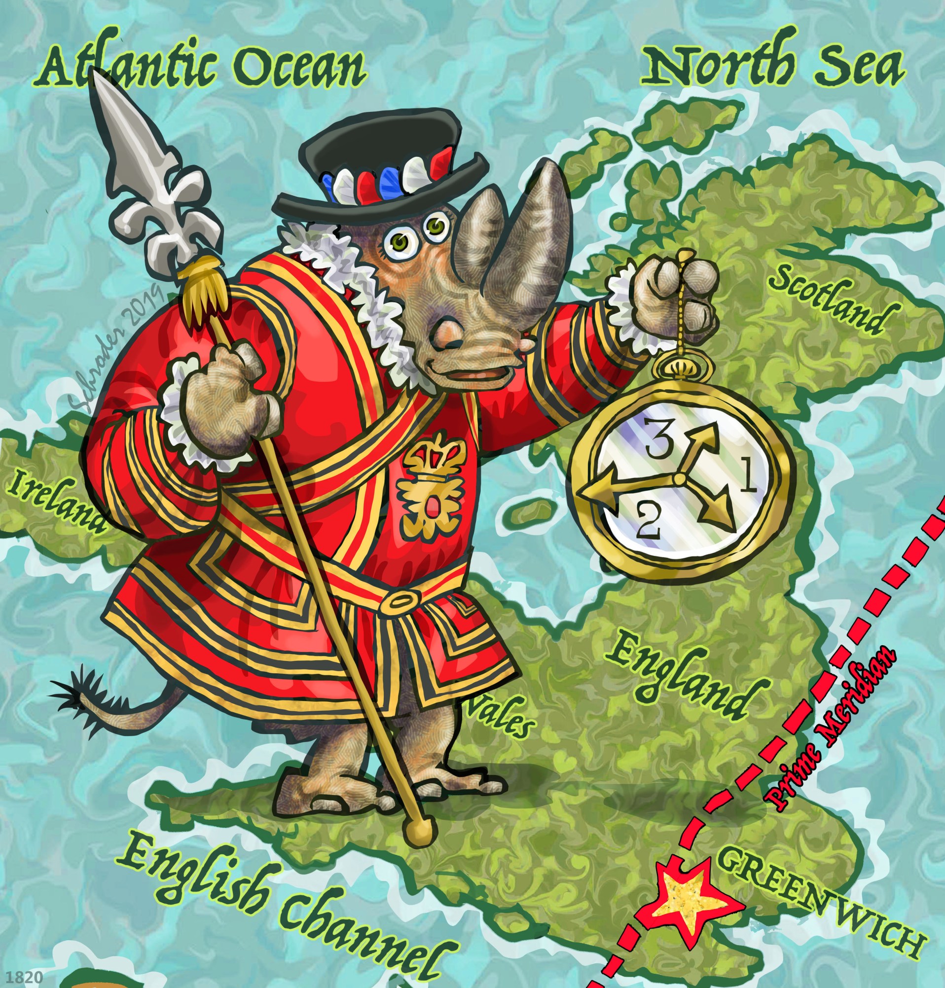 Wherever We go (or you go), the time is different than in Greenwich, but that’s helpful, Rhinos are told. Of course, We are still trying to figure out the Meridian question, so We are already running behind.