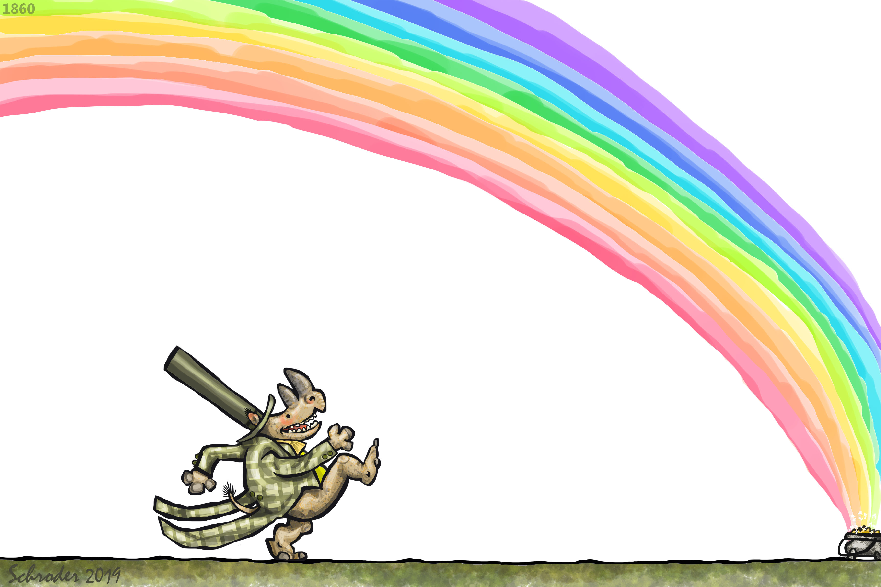 Stroke of Luck November 18, 2019 by Bill Schroder in R Attitude, R Temperament Rhinos know the exhilaration of finding something Happy just in our path. Serendipity. Of course, the pot of gold idea is purely symbolic. What would Rhinos do with it? The Rhino idea of a Bonanza is a radish or two. Radishes make Us chortle. Share this: Click to share on X (Opens in new window) X Click to share on Facebook (Opens in new window) Facebook Like Loading... Related
