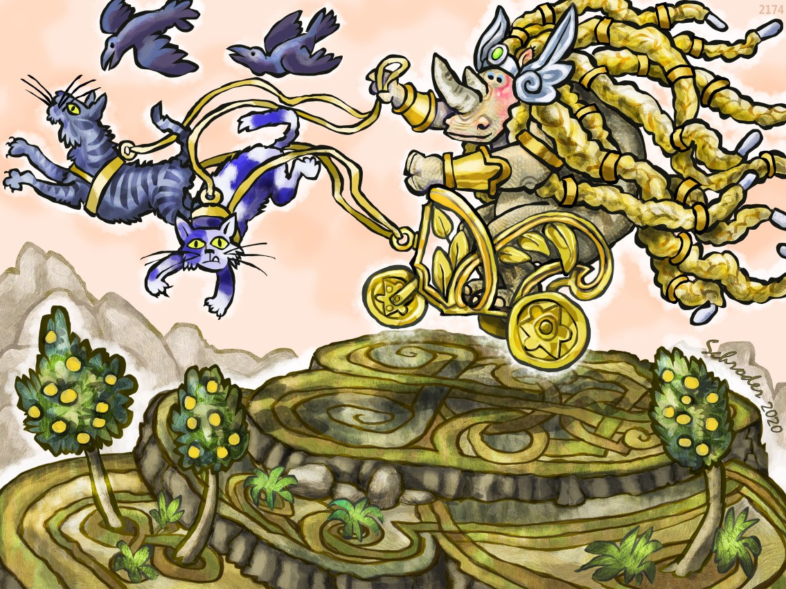 Missing from the image is some of her Goddess Equipment, namely, Hildisvini, a large boar, Brisingamen, an enchanted necklace, and her feather cloak, which she used to fly around. (Her chariot and two blue Tomcats were a gift from Thor.)