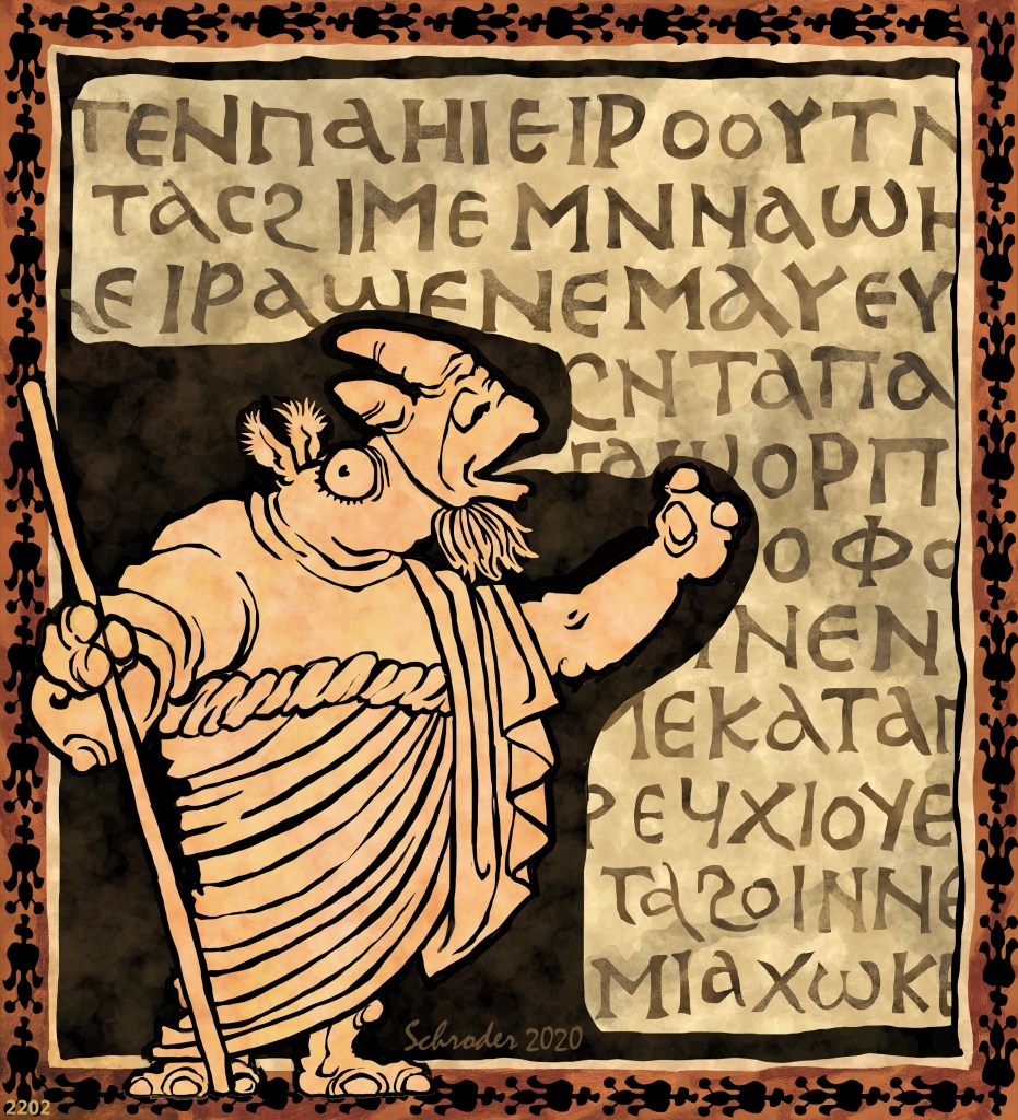 Panegyrics were delivered in Old Greek, so the other old Greeks could understand. Makes sense, when you think about it. Here is a sample of Old Greek, though it may be Greek to you already.
