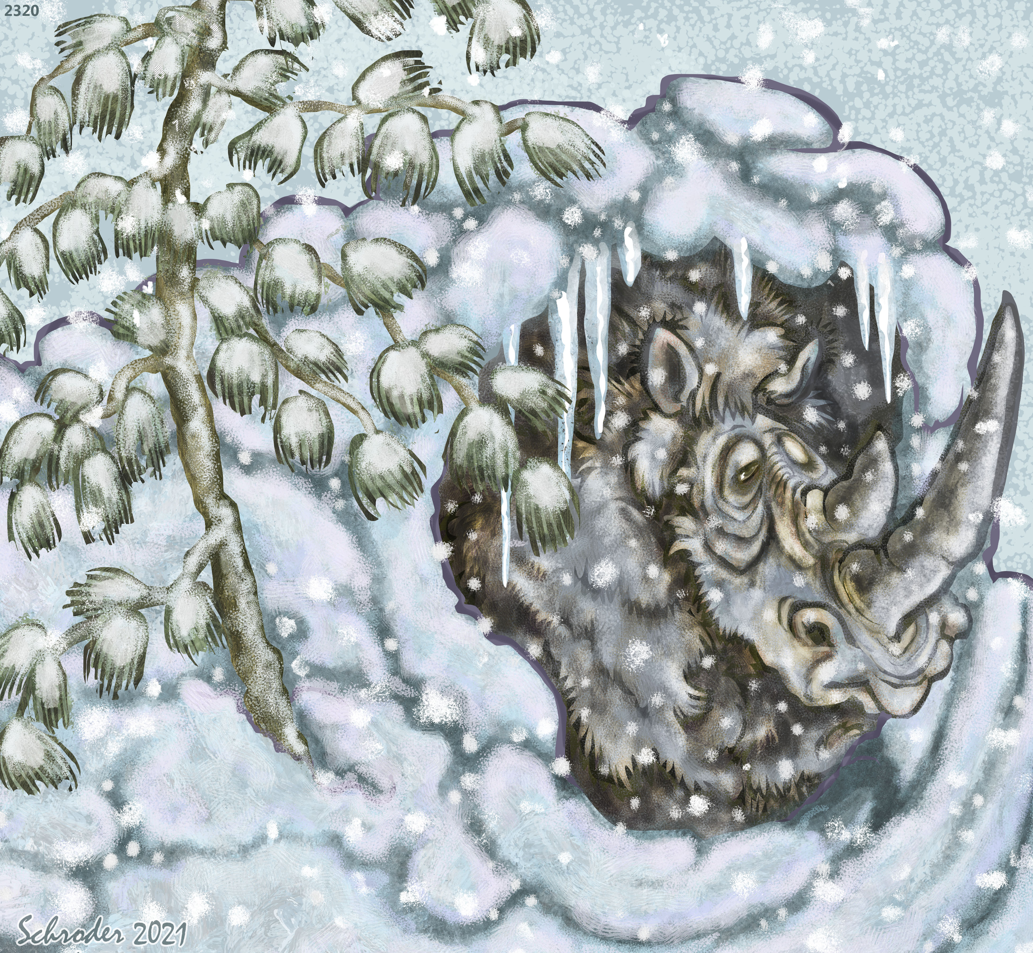 Even 2 million years ago on the wintry Steppe, Wooly Rhinos couldn’t get a decent snooze. We’d hunker down, have a blizzard, and then have to shove the snow aside to find dinner. Rough times back then, despite our Shaggy-ness.