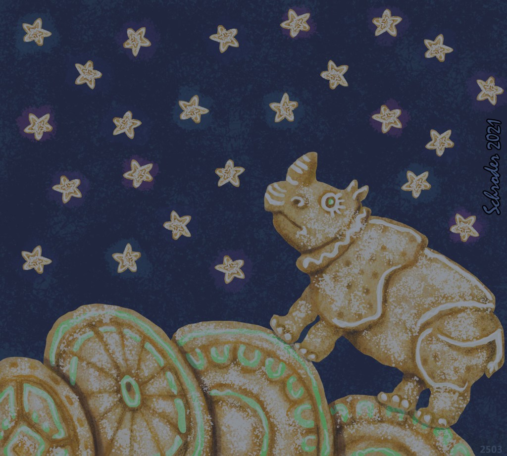 Today We Rhinos acknowledge the Thunder Moon, named for Thunder, as you might imagine. It is not here today, but tomorrow, it will appear, albeit skinny. Probably. Then blossom. But tonight, no moon.