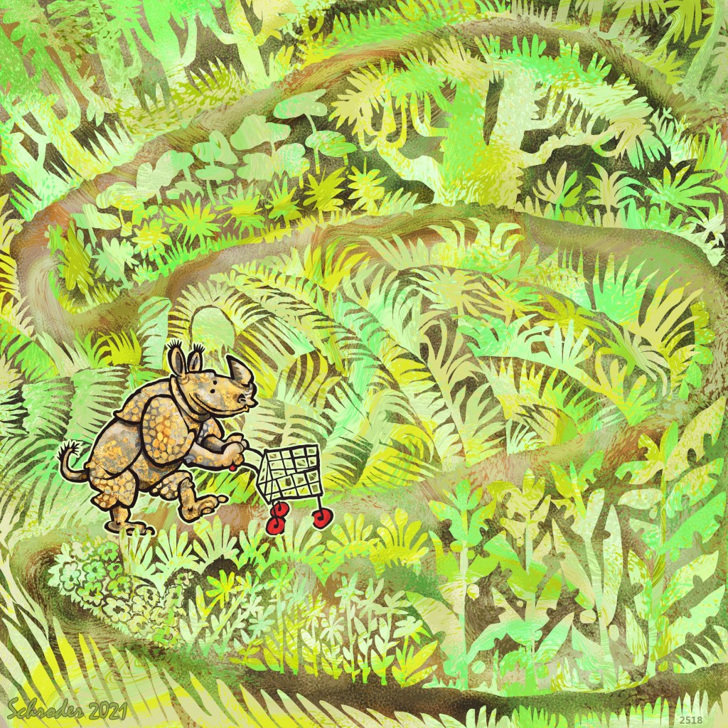 In the Wild, We Rhinos just respond to whatever Natural appeal plants have to offer, and then start to nibble. Which often leads to single-minded chewing. We chew on until later, when We stop. Then We shop on.
