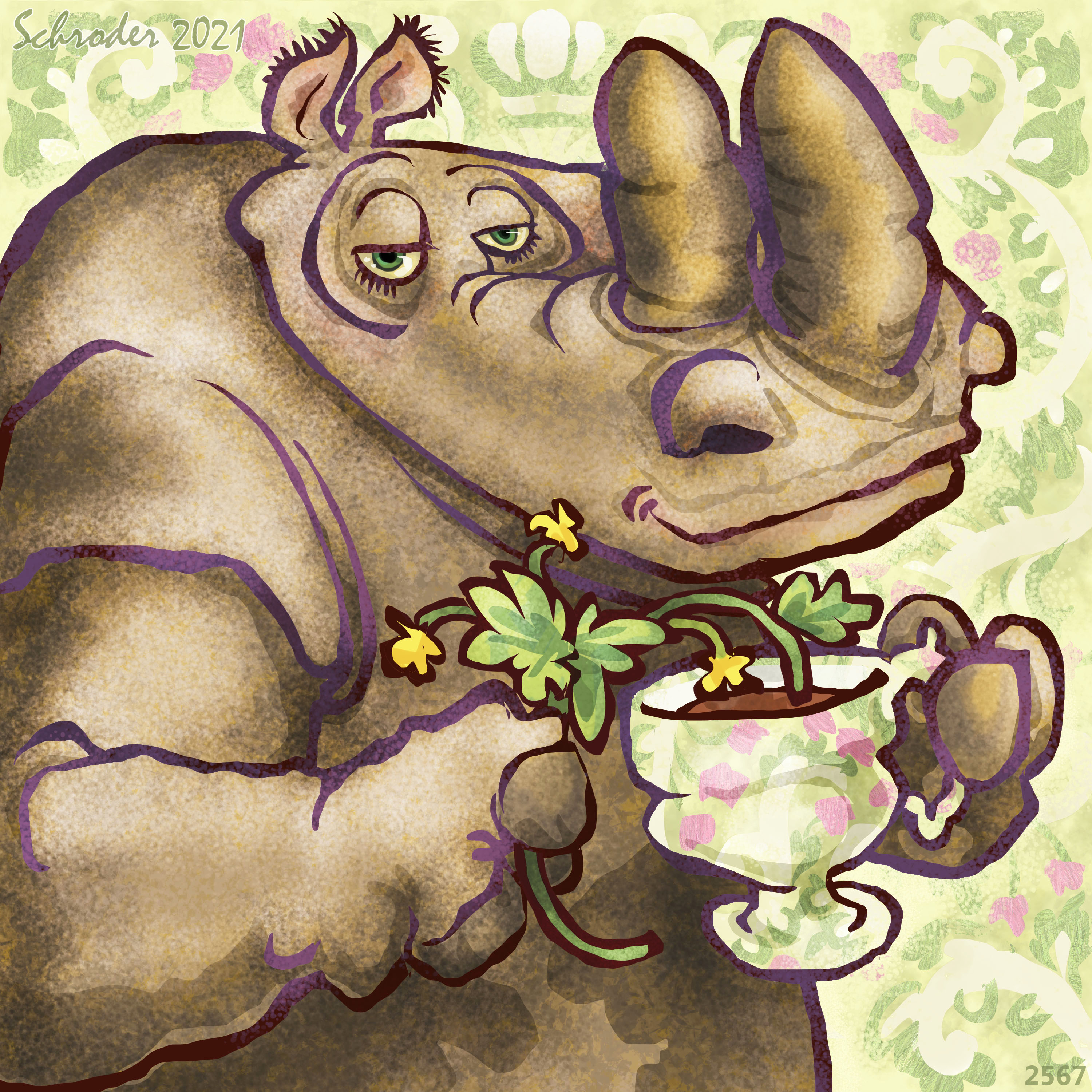Tea Time September 11, 2021 by Bill Schroder in Uncategorized Recipe: jam some plants into some water and let it rest a bit. Then drink the water. Amazing how relaxing these modest rituals can be. It’s a time-honored trick of the Rhino Family. Using a cup is an arbitrary decision, unless you have no cup. Share this: Click to share on X (Opens in new window) X Click to share on Facebook (Opens in new window) Facebook Like Loading... Related