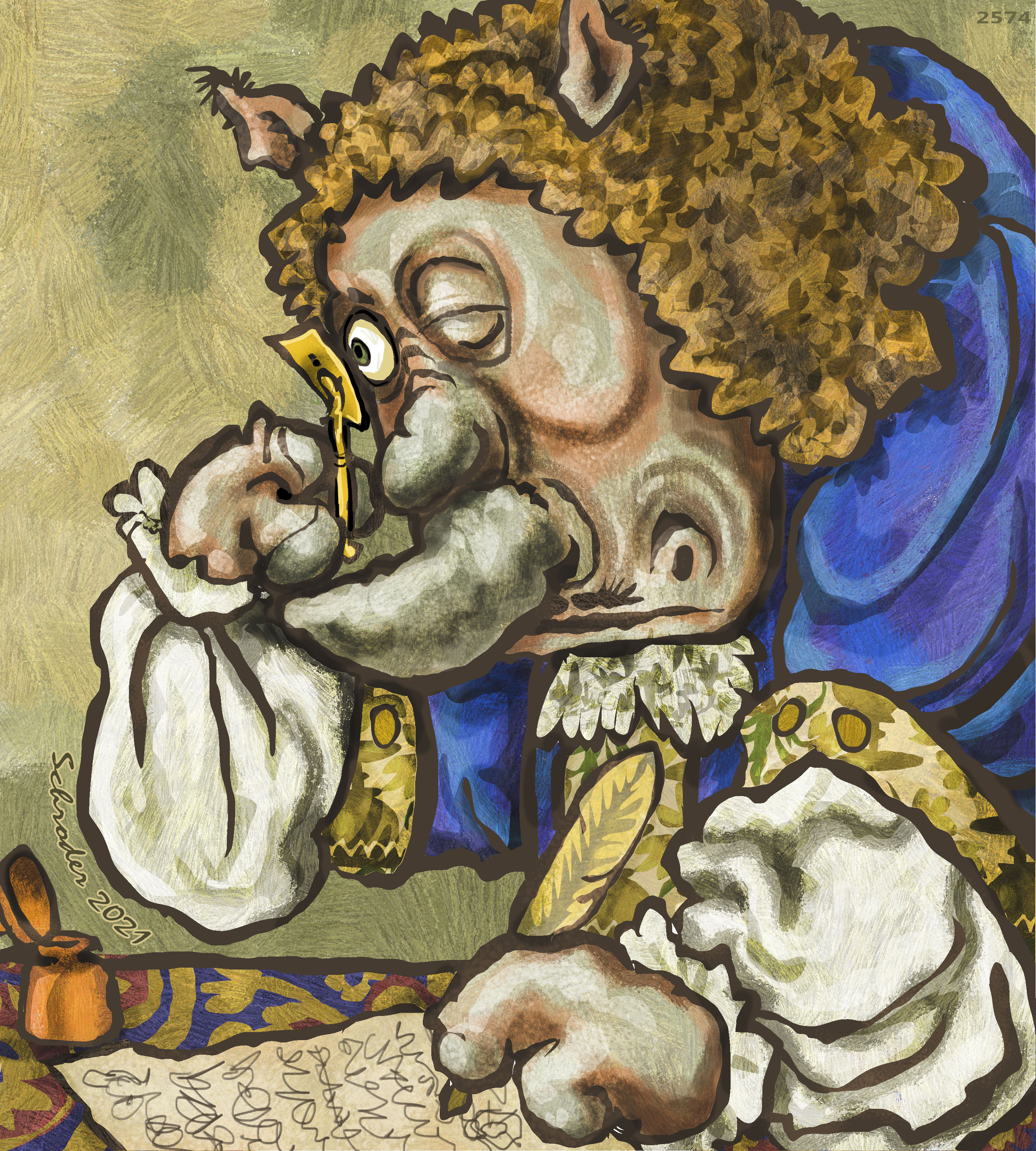 He wore a small moustache. Rhinos can’t grow them either. We draw them on, as needed.