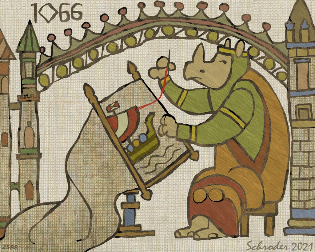 But for Us and all the other people who were not there, there is a record of the events, namely the Bayeux Tapestry, an elaborate pictorial record which measures 270 feet, end to end. It can still be seen in France. Much of history comes and goes without a trace, but this artifact is invaluable in its detail and clarity of narration.