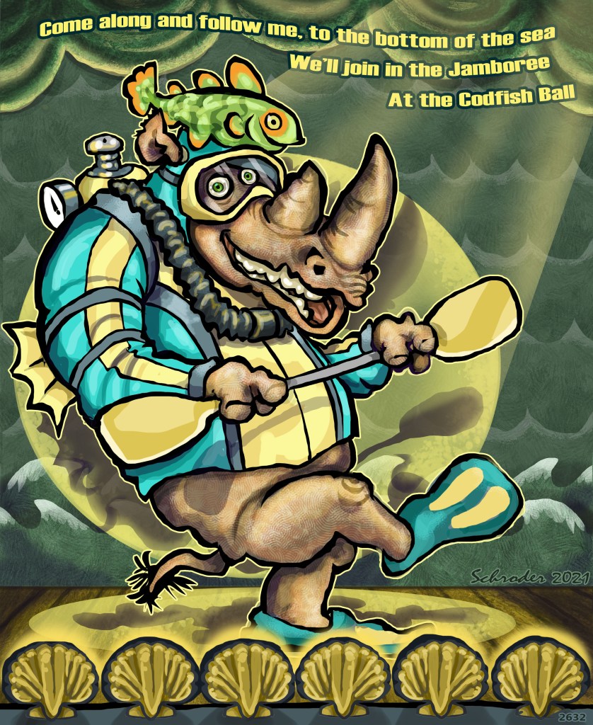 Lobsters dancing in a row, Shuffle off to Buffalo, Jelly fish sway to and fro, at the Codfish Ball, etc.