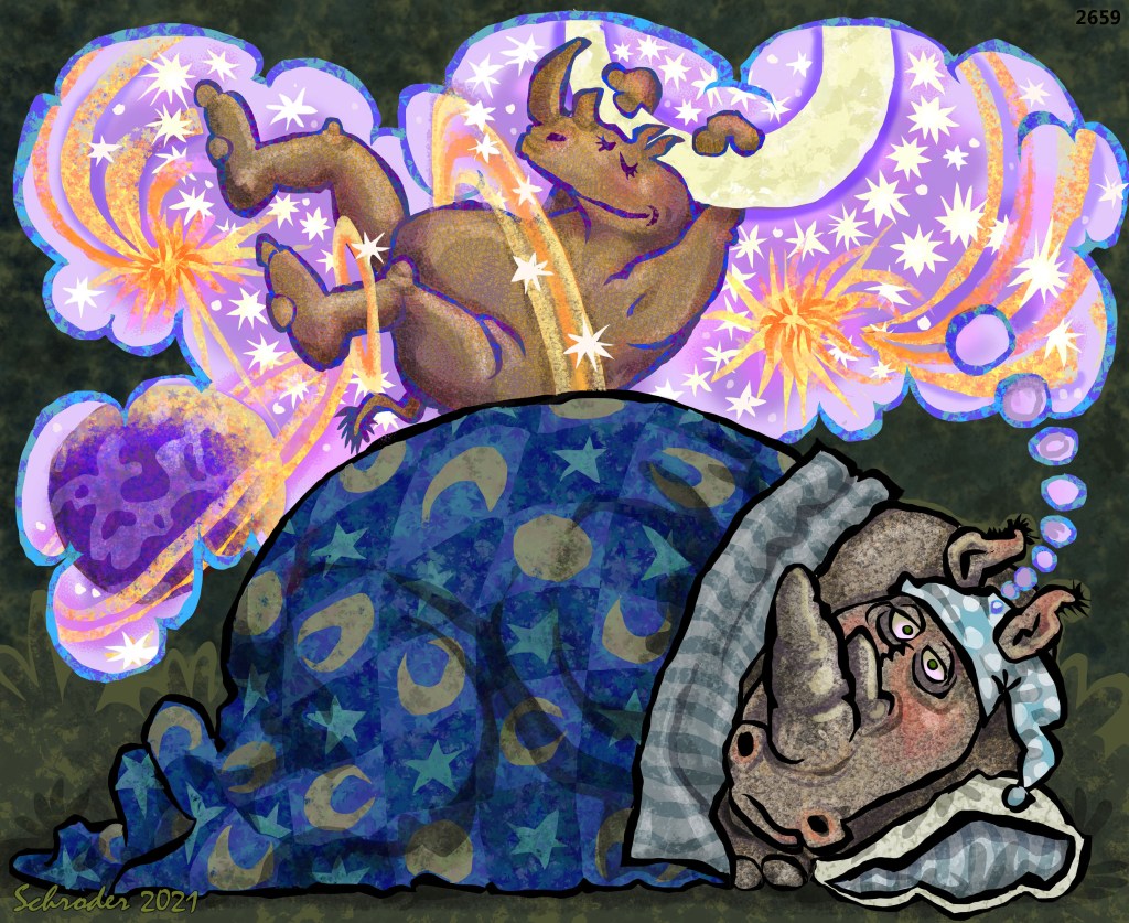 Rhinos are accomplished Dreamers. We are never sure what determines the nature of our dreams. Some dreams are great, others, not so much so.