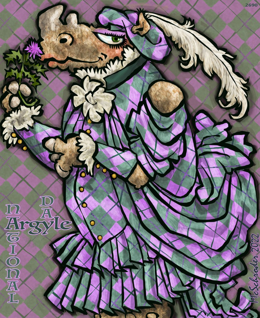 Today is and has been National Argyle Day. In popular jargon, Argyle is a pattern for weaving and knitting, made popular in south-west Scotland, a region power-packed with sheep. Sheep are indispensable when knitting or weaving woolens.