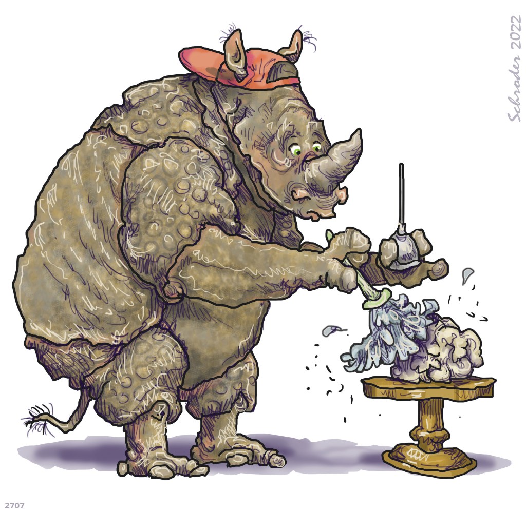 So that Rhino takes time to do a little mental dusting, lubing, and pampering.