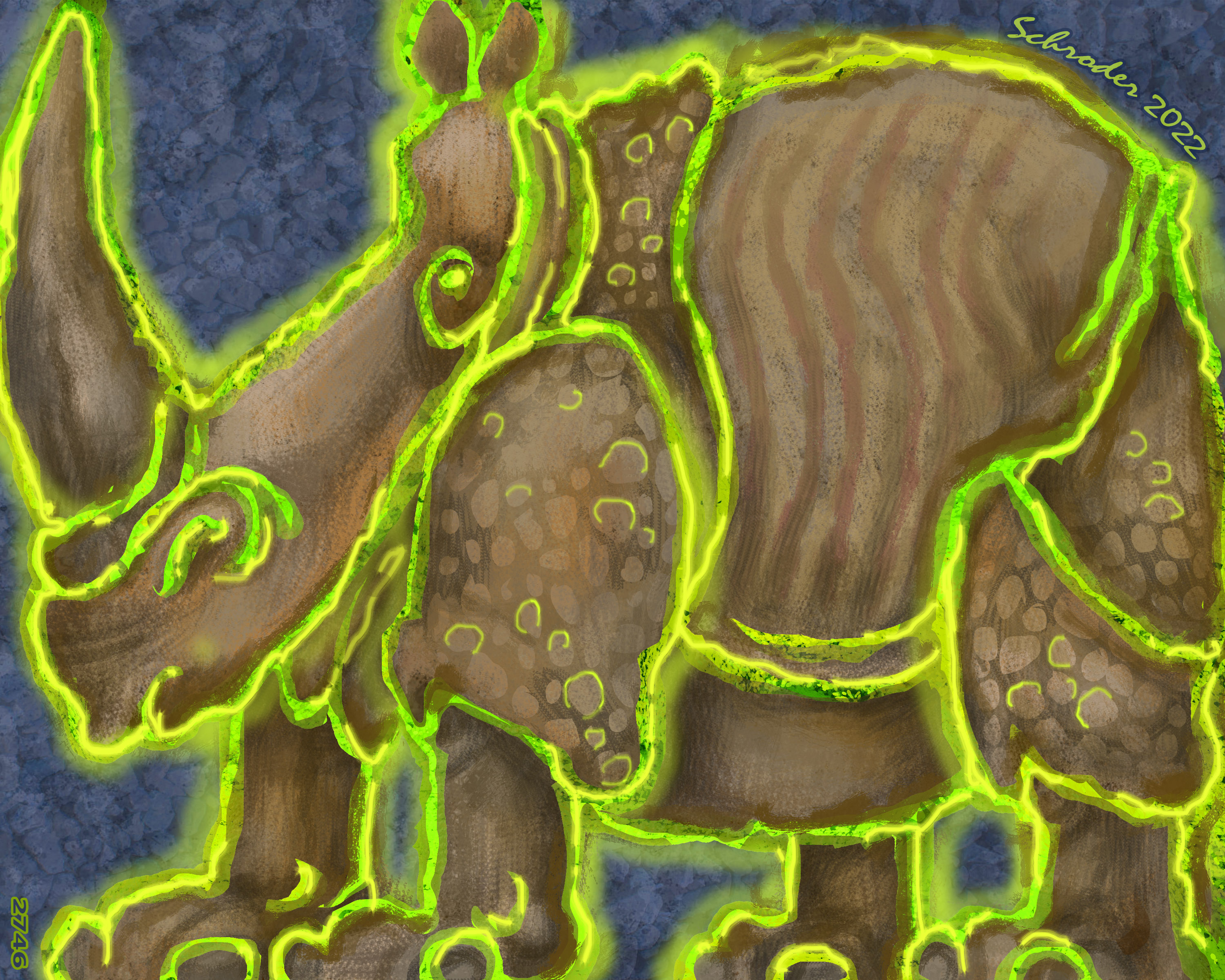 How exciting it would be to see a glowing Rhino in my back yard. P