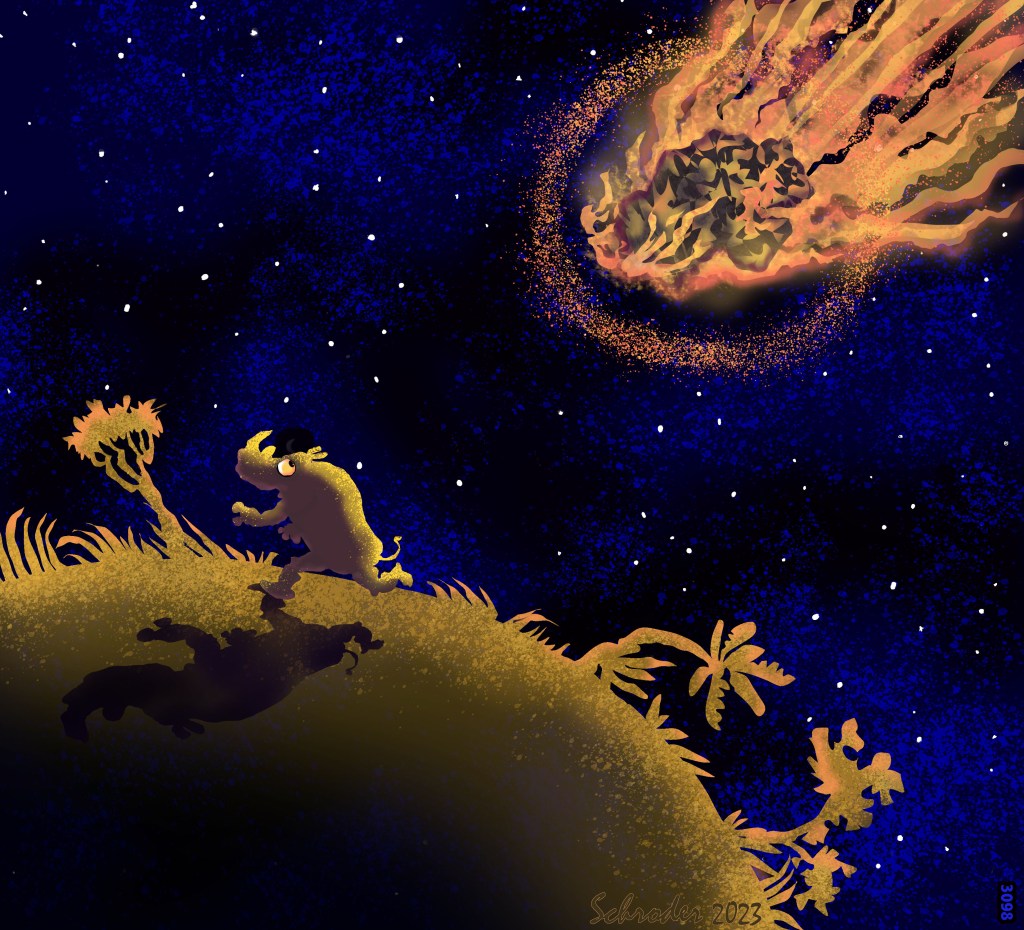 Today honors the National Meteorolgical Day. Besides being tricky to spell, Meteorology refers to Weather, in the larger sense, whatever that means. It’s a big topic, but what Rhinos know is that Meteors, although impressive, are Very large, Very speedy, and unpredictable, Very.