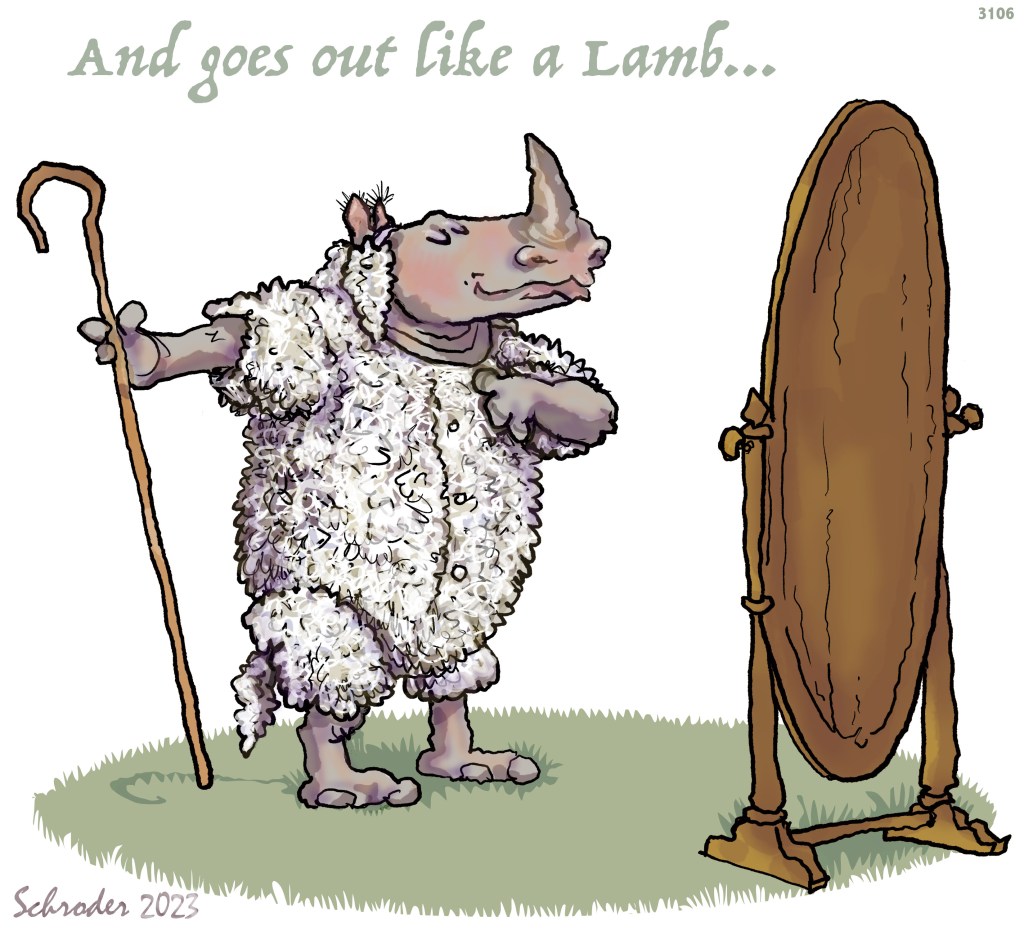 So once more We at Your Inner Rhino crack out our ‘Lambie Adieu’ outfit, and peer into the future, namely April.