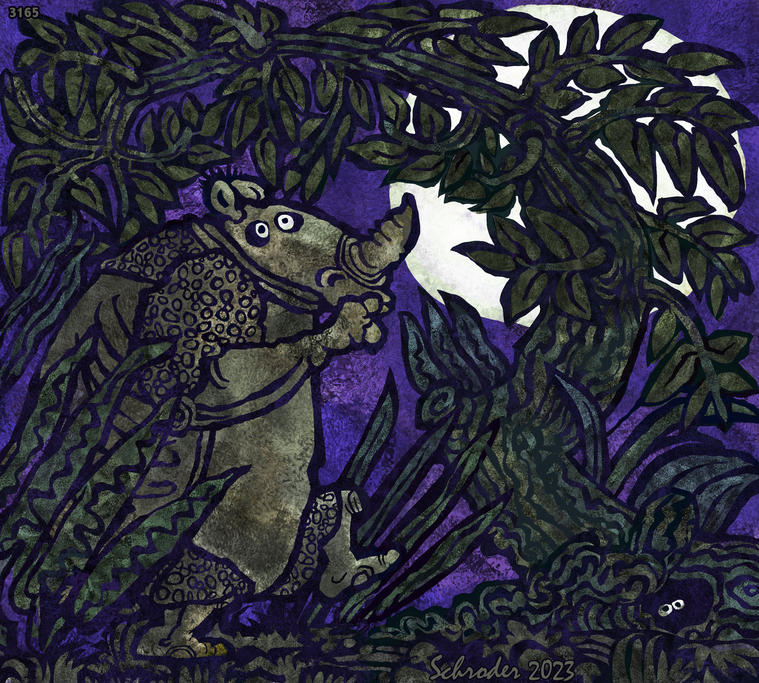 To preclude a Reader Riot, We are celebrating the Full Moon right away. We are aware that We often miss the actual date We’re extolling by a few minutes. Not telling Time, as Rhinos don’t, it does not seem like much of an issue, but in case it does, We regret causing a fuss.