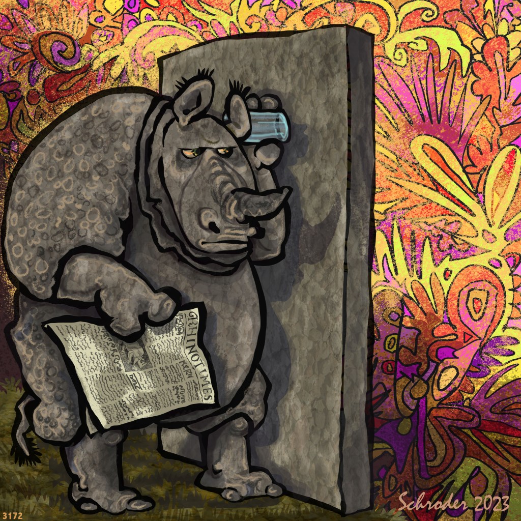 We occupy whatever space We are allotted, and hum mantras to ourselves. Thus Rhinos build our character and get on with ourselves. As best We Neighbors can.