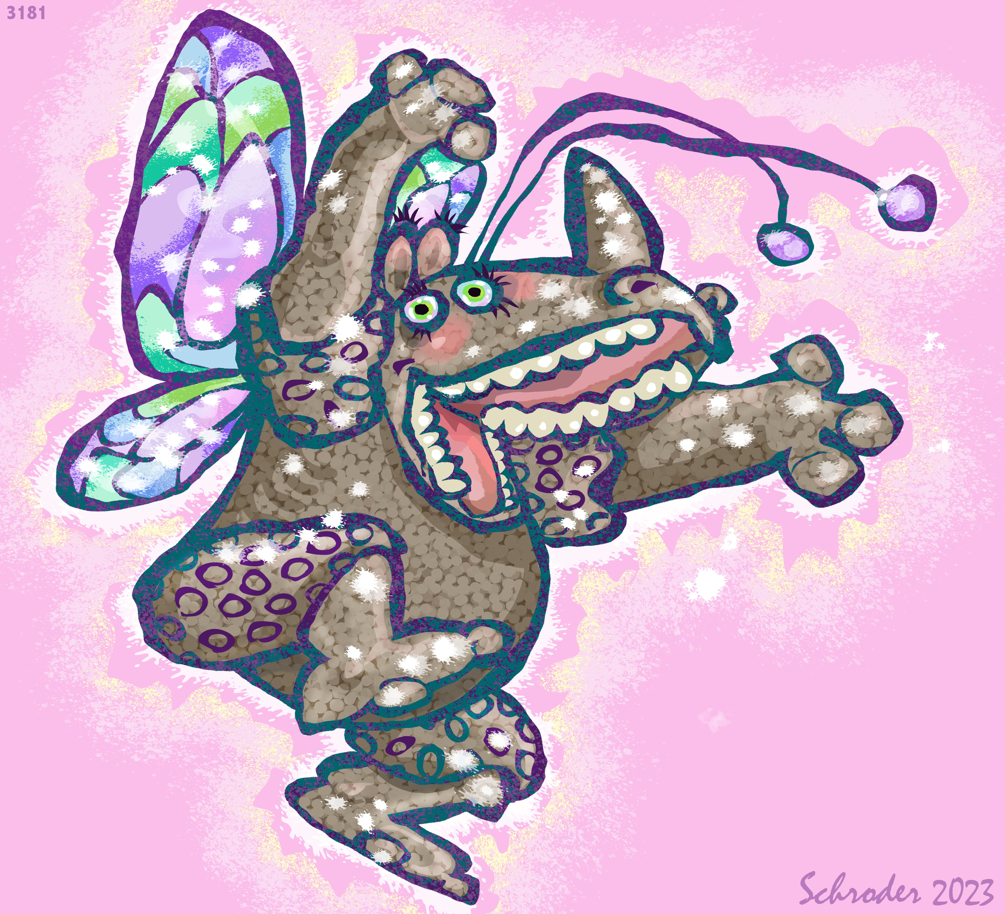Fairies are elusive, so We have to keep our eyes peeled if We want to see them. Rhinos make rather chunky fairies, but nobody has ever mentioned that, so We assume Fairies come in many styles, Rhinos being only one of them.