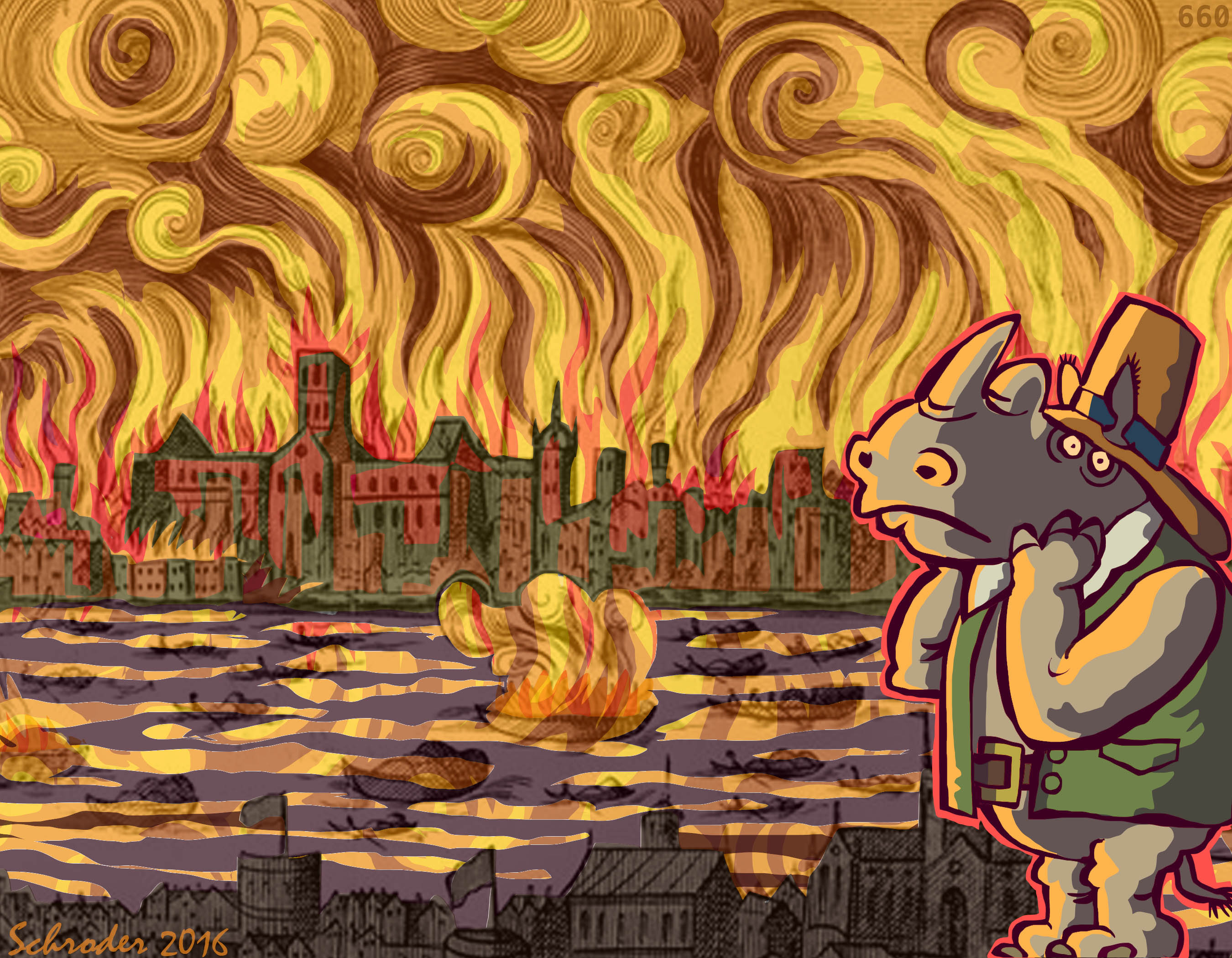 In 1666, London, England, had a Great Fire. (Great, meaning huge.) Many folk lost all they had, house and all. The fire was started with a “Whoops” at a bakery in Pudding Lane, which sounds improbable, but is still the fact. ‘Twas a disaster.