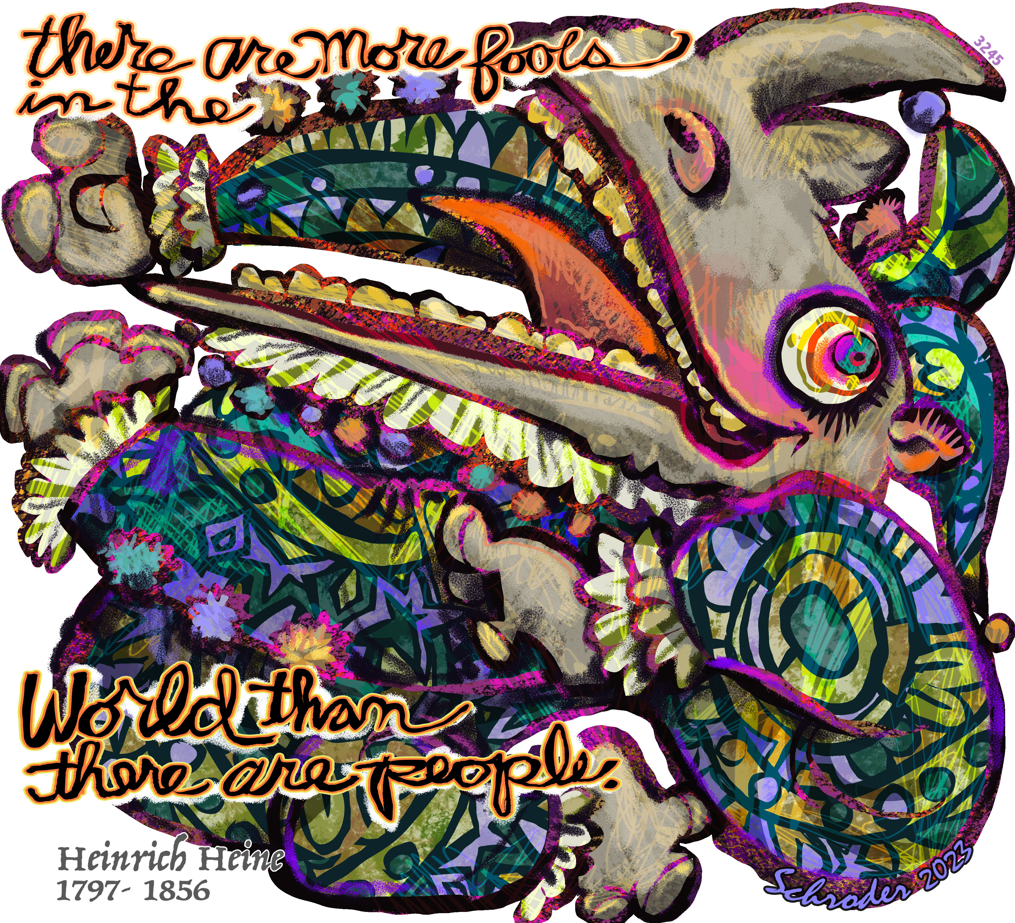More or Less September 27, 2023 by Bill Schroder in Uncategorized Rhinos are perfectly willing to admit our own potential for Foolishness. So if each of Us is capable of a zillion samples of Foolishness, per day, it follows that … well, it follows something. Lots of Foolishness to go around., that is the moral. Share this: Click to share on X (Opens in new window) X Click to share on Facebook (Opens in new window) Facebook Like Loading... Related