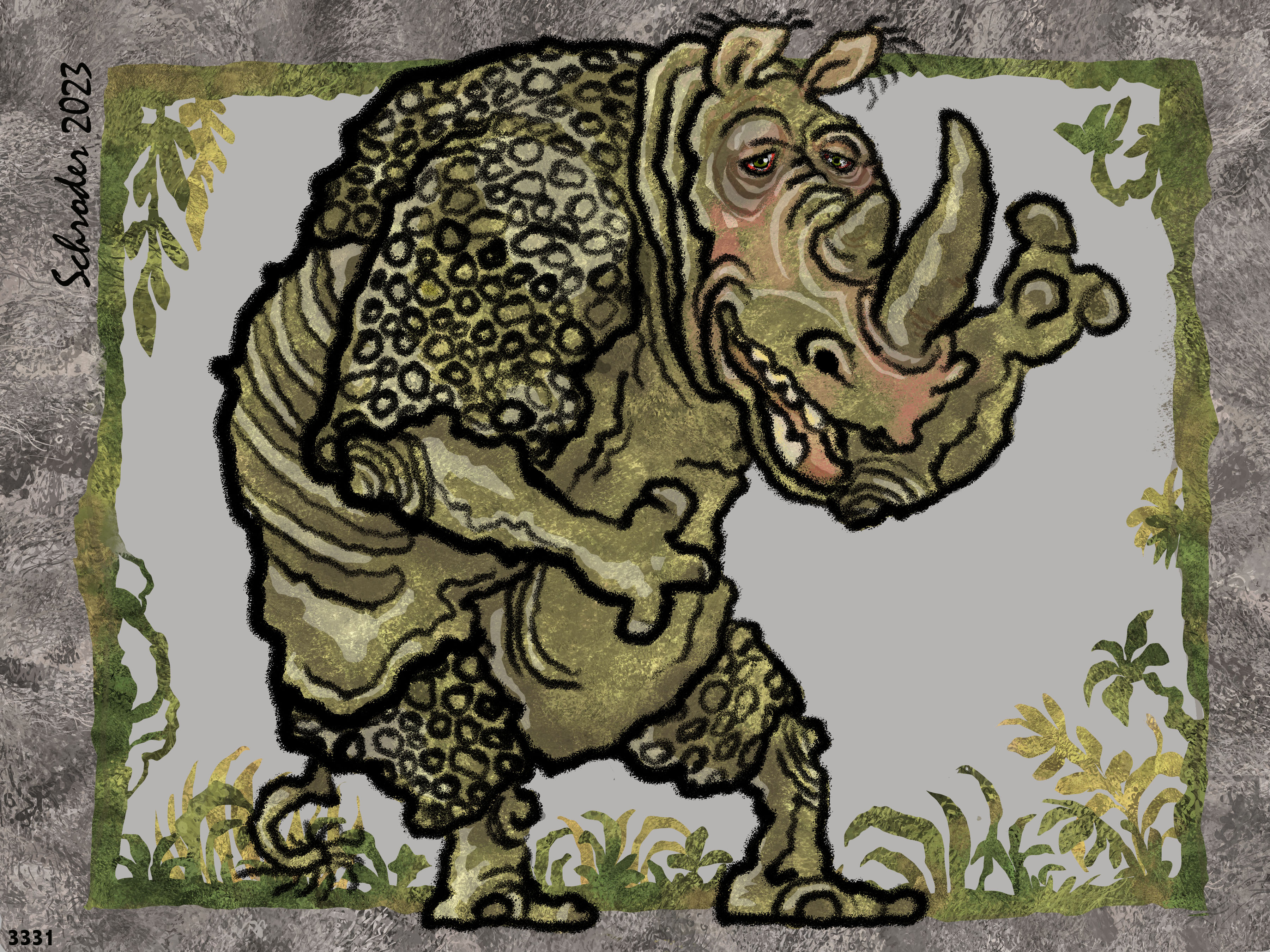 Young Rhinos ask a lot of questions, many of them perfectly valid. One such is the fact/fiction of pig flight or no, which is it, huh? Adult Rignos try to explain, but the question itself is always passed over. The reason is, if there are no airborne swine, why would anybody say so? The only answer that occurs to young Rhinos is that these pigs exist somewhere, or used to. If not, why mention them?