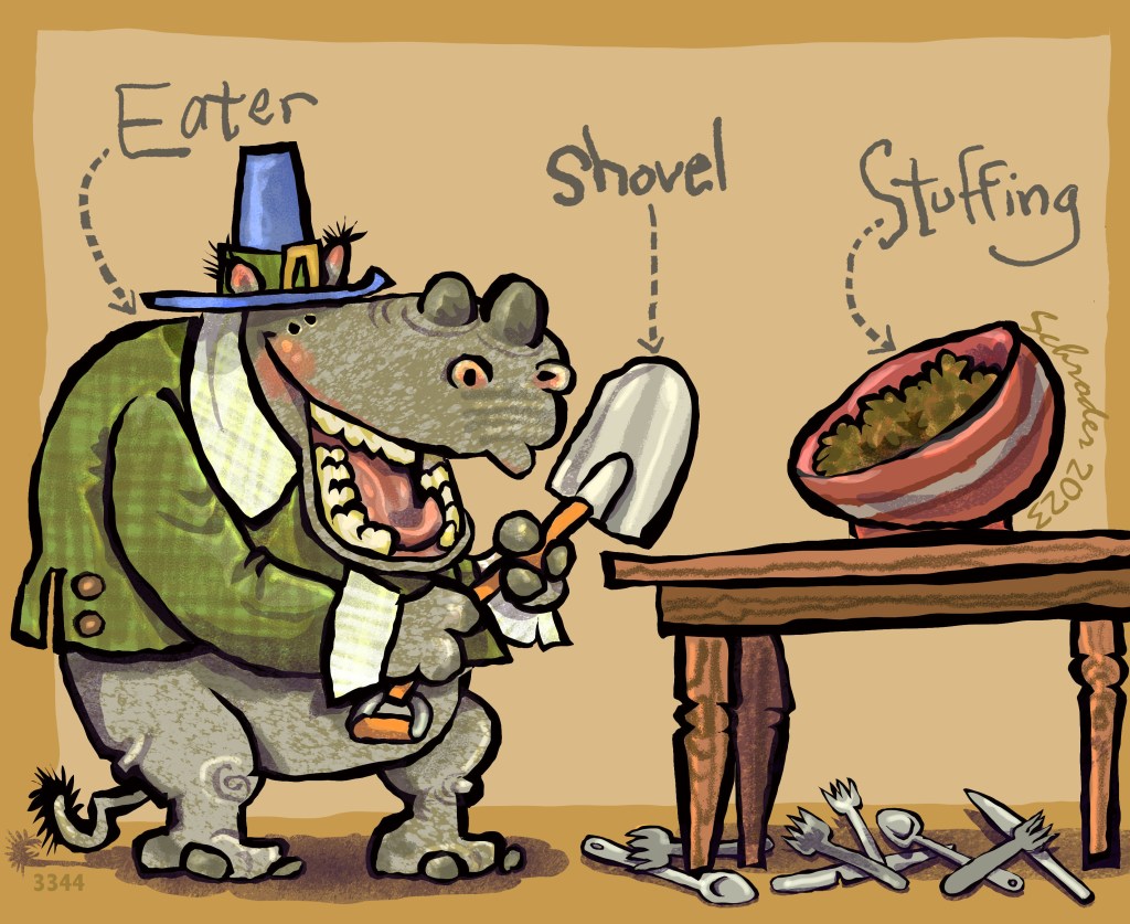 Rhinos often have trouble with the idea of teensy silverware at mealtime. Not much Food sticks to them.