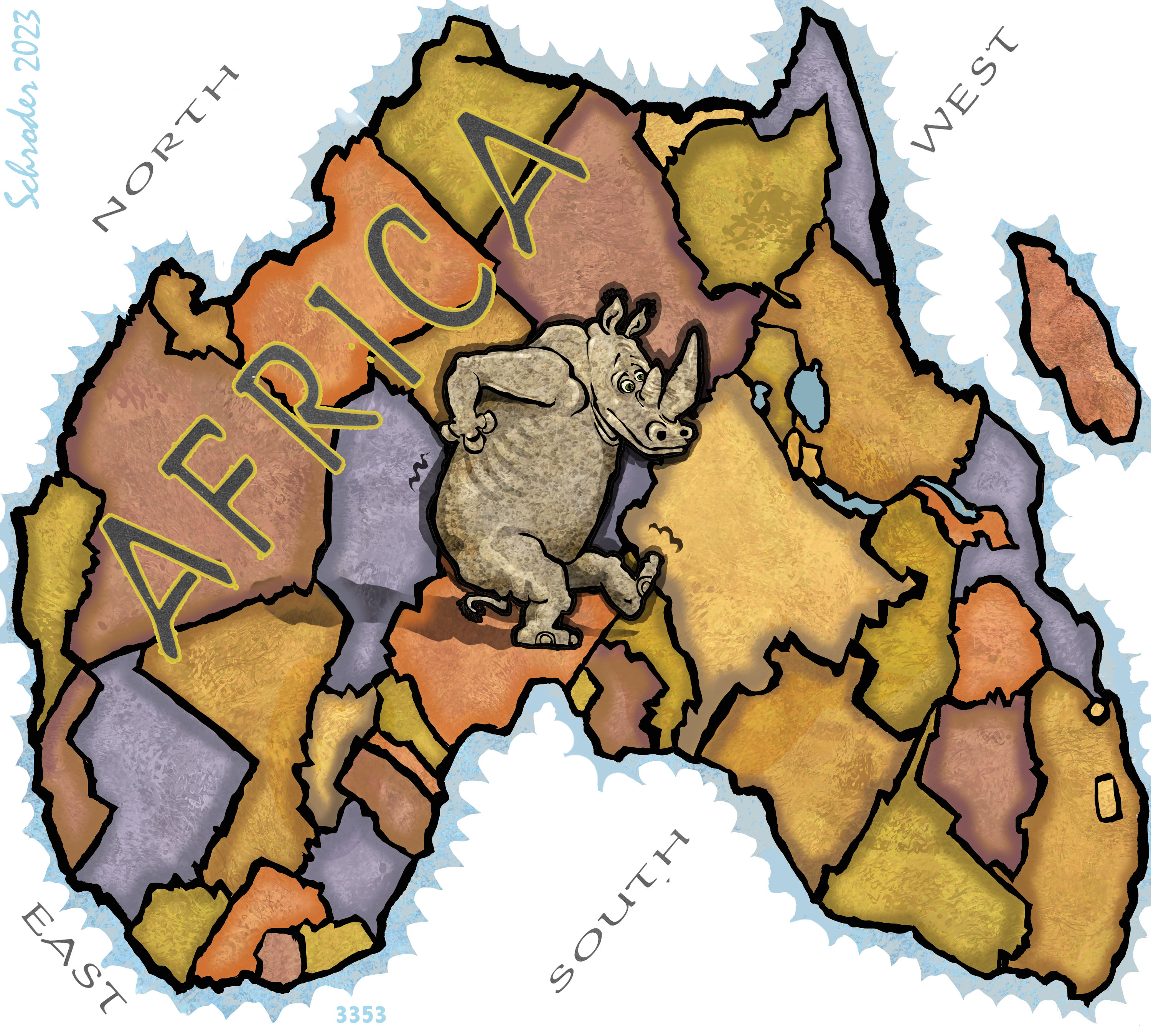 We Rhinos have dined on those grasslands for eons, and it is hard to know where We are welcome, and where less welcome. The lines between one Country and another are foggy to Us; We cross those lines with caution. On the map you see the bold black lines where one Country butts up to another. These Countries have names, but 1) the names change, and 2) We don’t get it. There are many mysterious rules for the residents. We don’t know what the rules are; Nobody tells Us. The moral of all that is: watch your step.