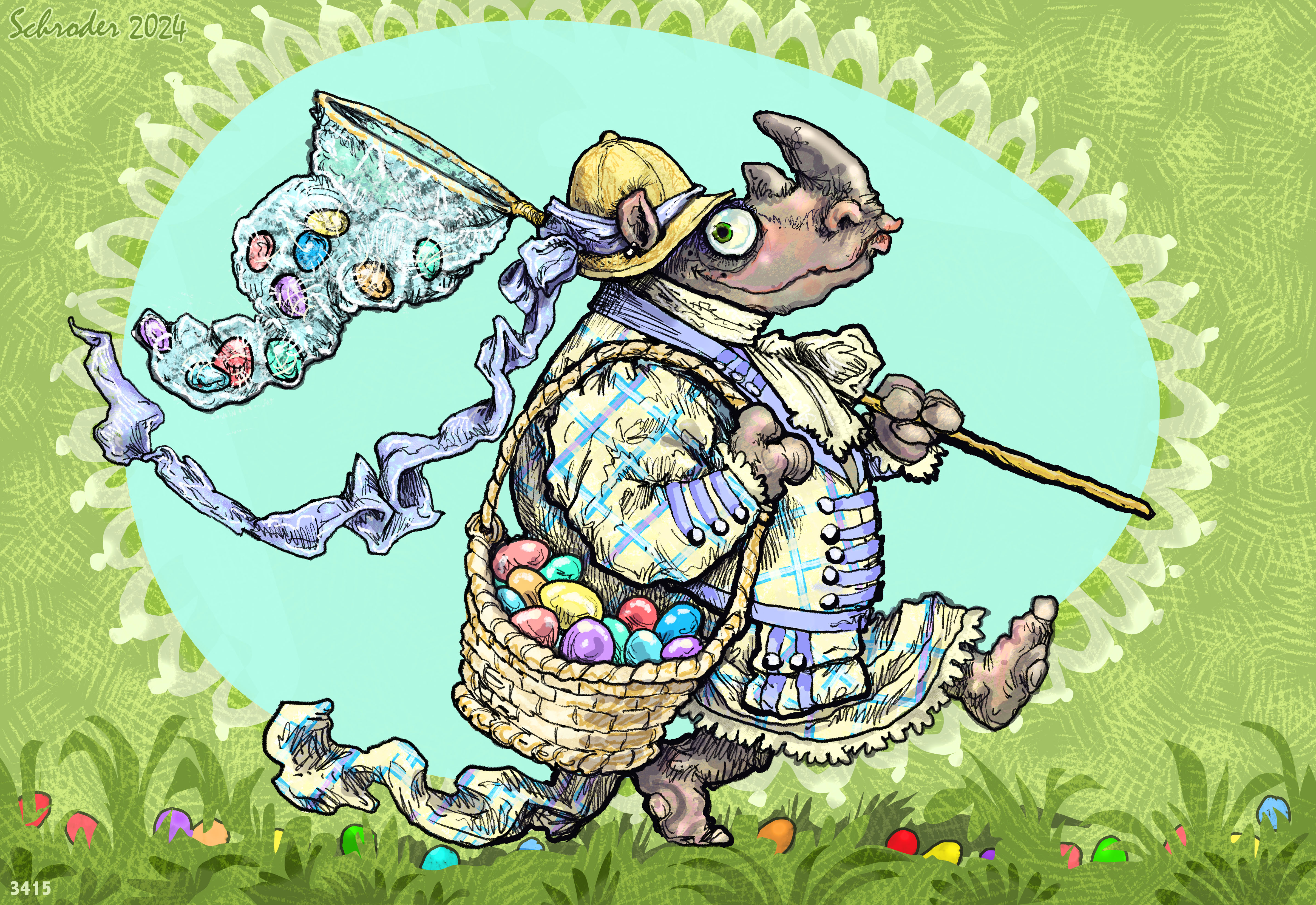 The Rhino policy for Easter Egg collection is to keep cheery. That is the Rhino system, and is consistently effective. Humming and skipping enhance the quest, and those techniques seem to lure the Eggs themselves; they place themselves right in the path of the wily hunter.