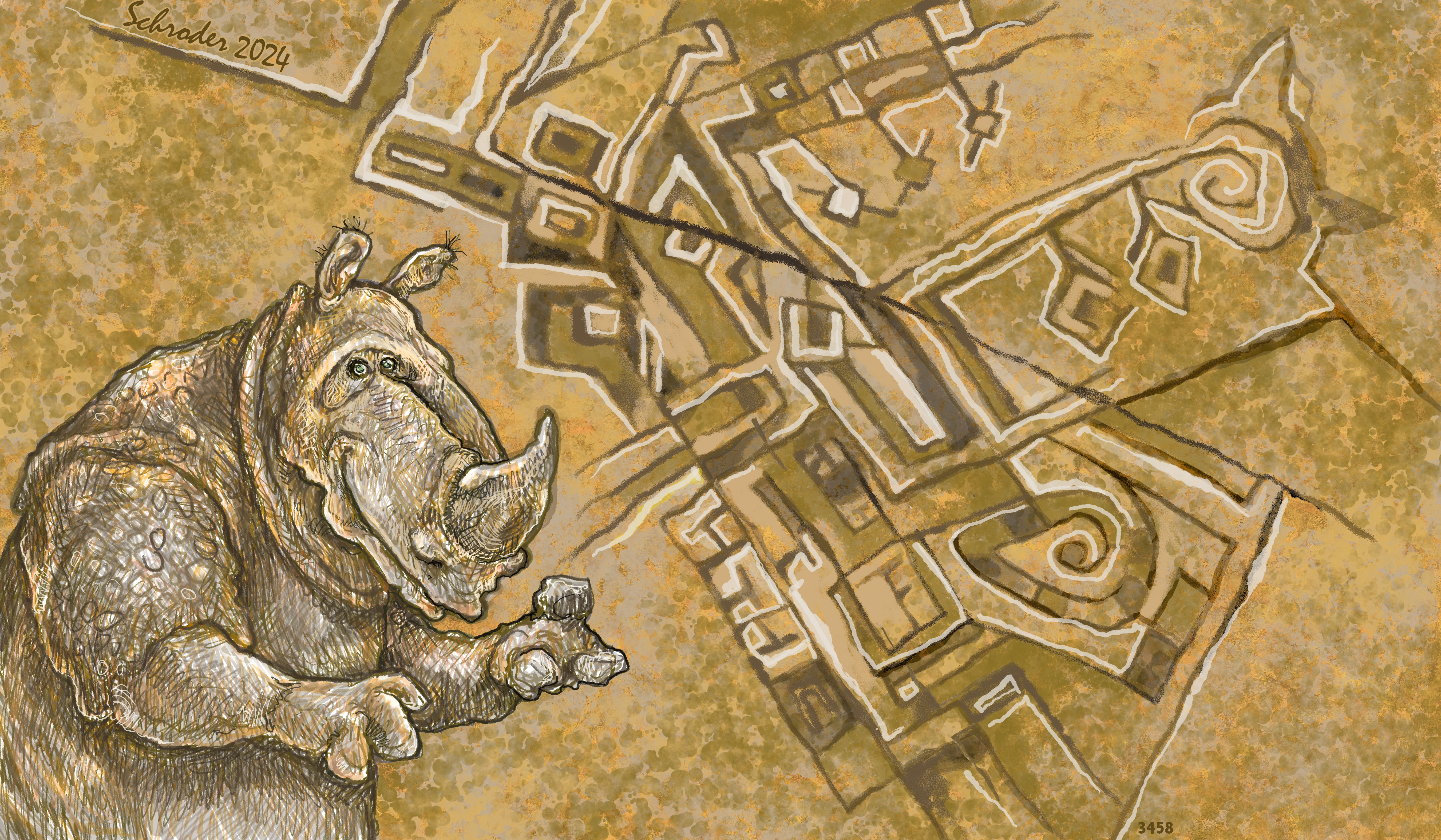 We Rhinos were surprised to find out that our main means of communication are called ‘ideoglyphics’. It means that markings represent something, whether they mean much to you or anybody else. A familiar example would be old Egyptian heiroglyphics, which meant nothing much for two thousand years until Mr. Jean-Francois Champollion cracked the system in 1822.