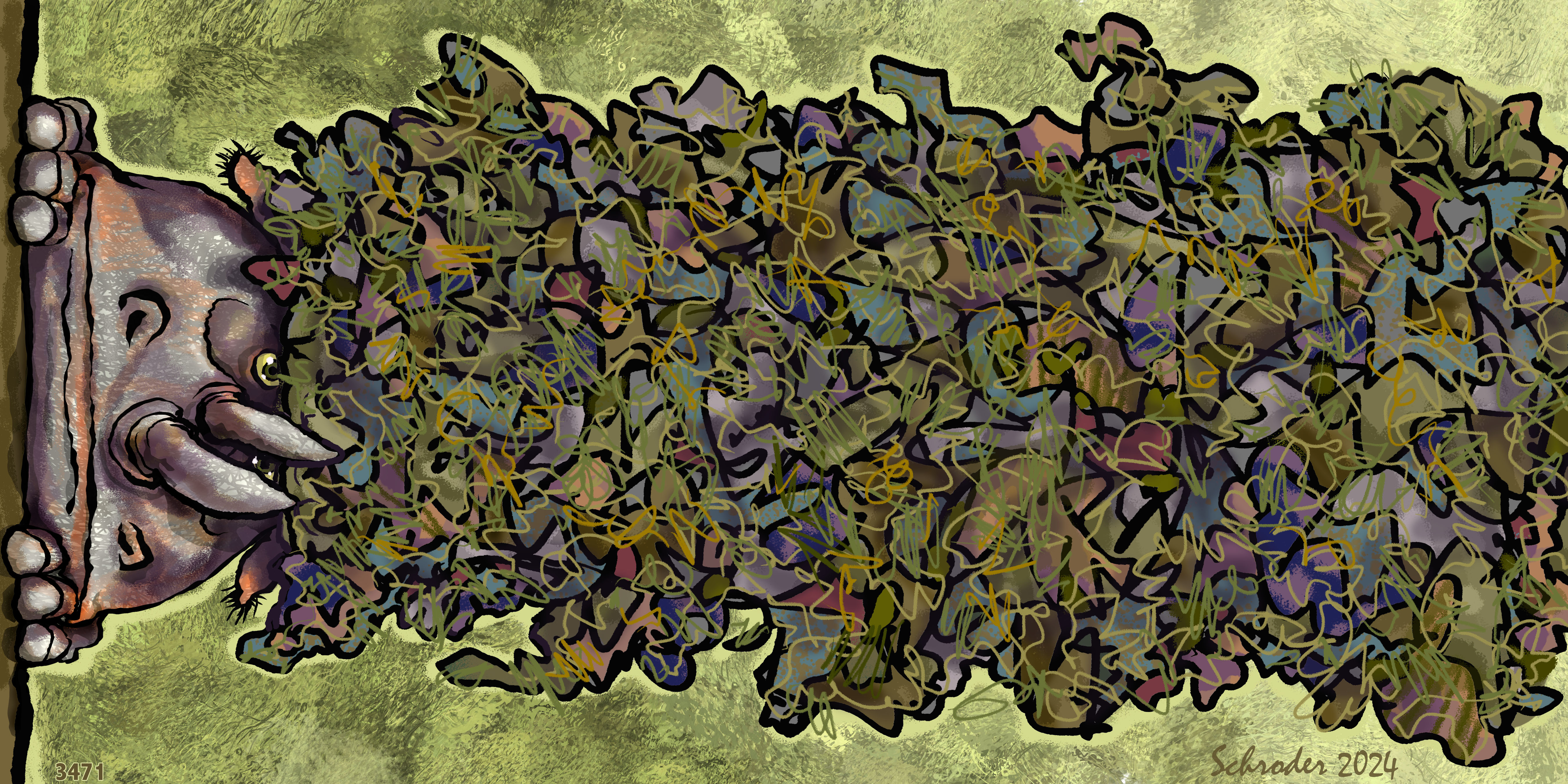 Disorderly Conduct June 9, 2024 by Bill Schroder in Uncategorized Some Readers seem to feel that a life in the Wild must be simplicity itself. Allow Us to assure you that Rhinos have a great deal on our minds. So much, in fact, that organizing it is a task taxing our limits, or much of the time it is. Share this: Click to share on X (Opens in new window) X Click to share on Facebook (Opens in new window) Facebook Like Loading... Related
