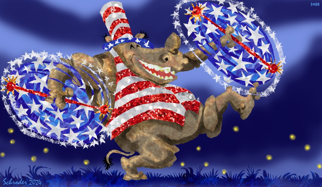 Huzzah, July 4!! July 5, 2024 by Bill Schroder in Uncategorized also, Hooray, from Our Inner Rhino to Yours! Share this: Click to share on X (Opens in new window) X Click to share on Facebook (Opens in new window) Facebook Like Loading... Related