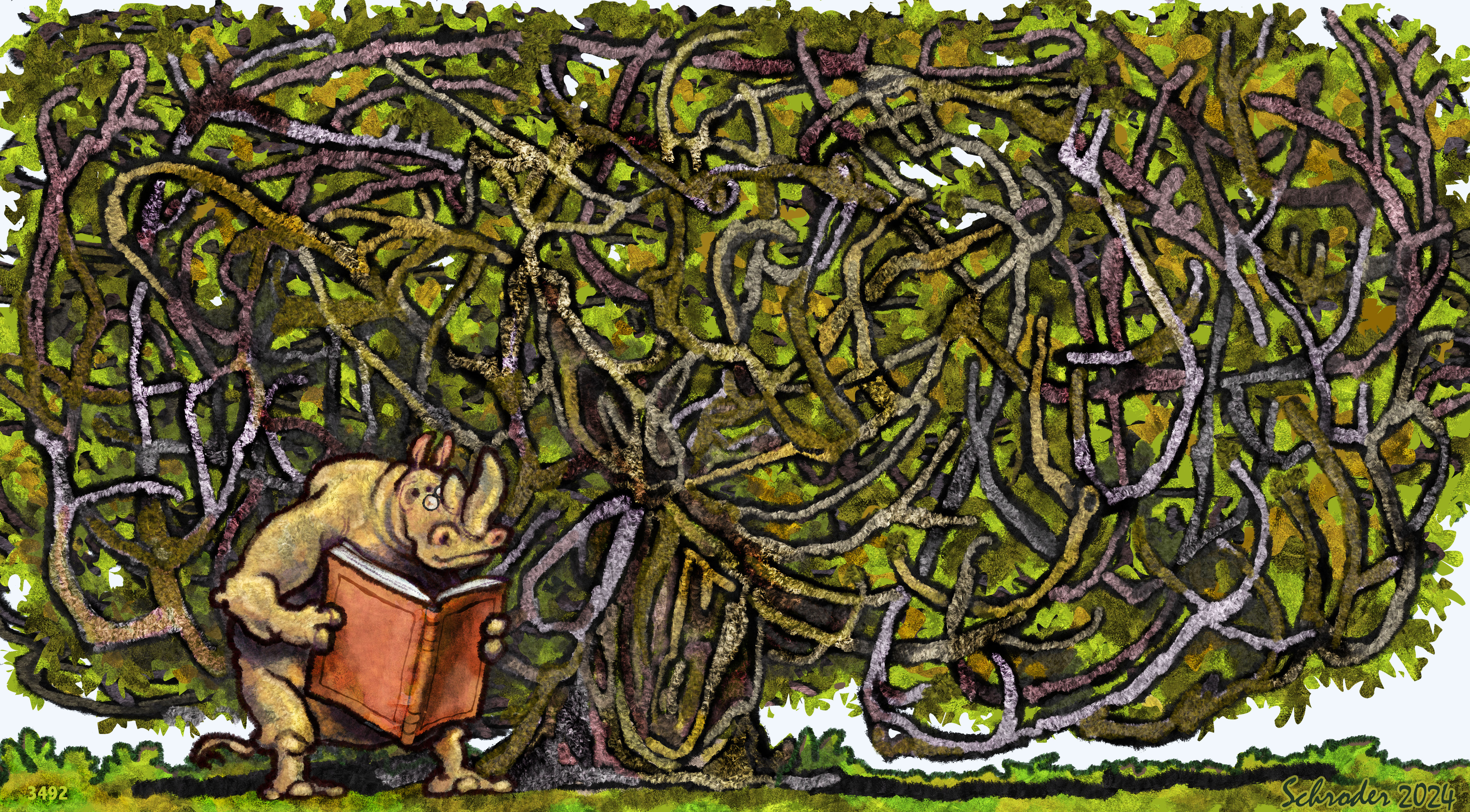 The Tree of Knowledge, as far as We are concerned, is individualized. Rhinos can’t expect to understand every branch of Experience or Life. We add up our impressions and keep alert, as best We can. Some may call it a Tree; We call it a Thicket.